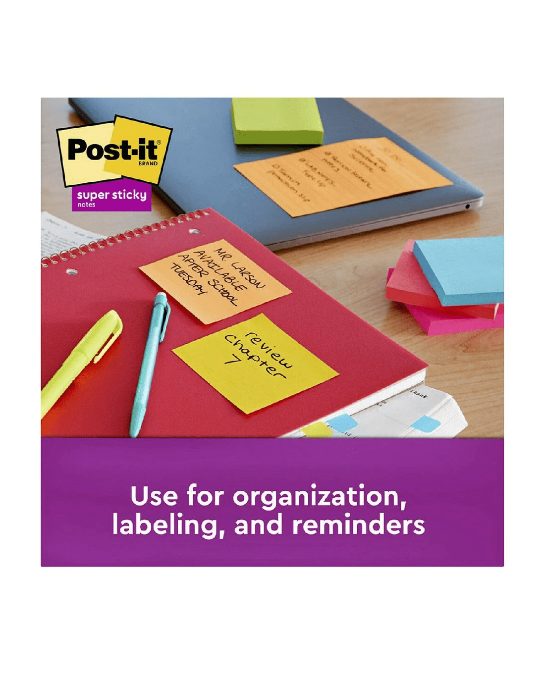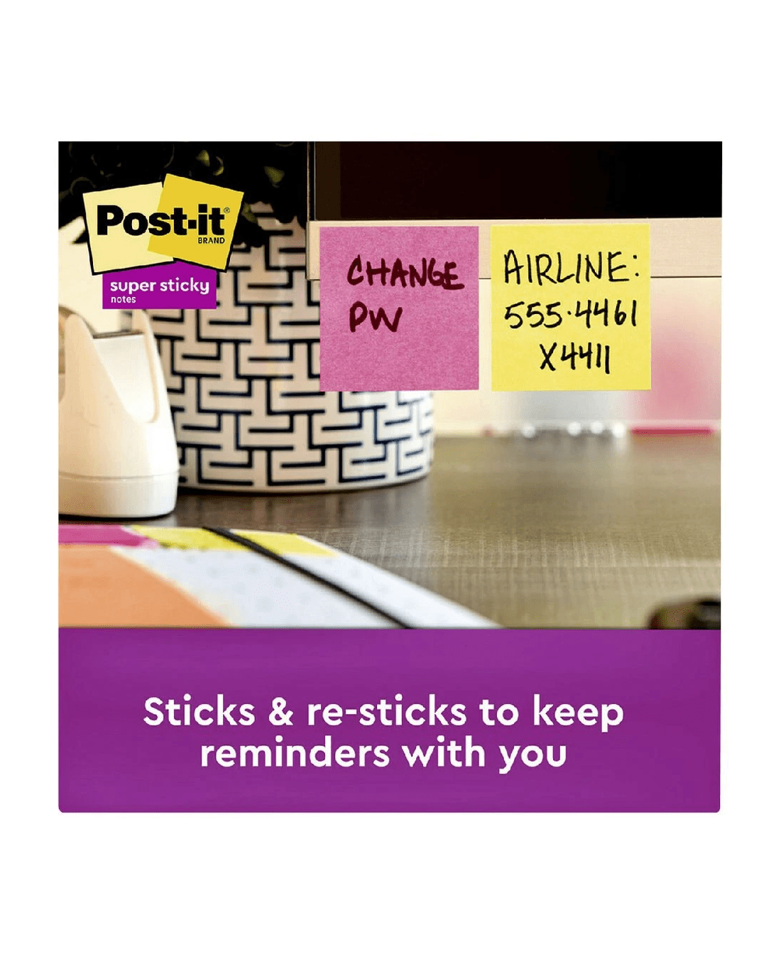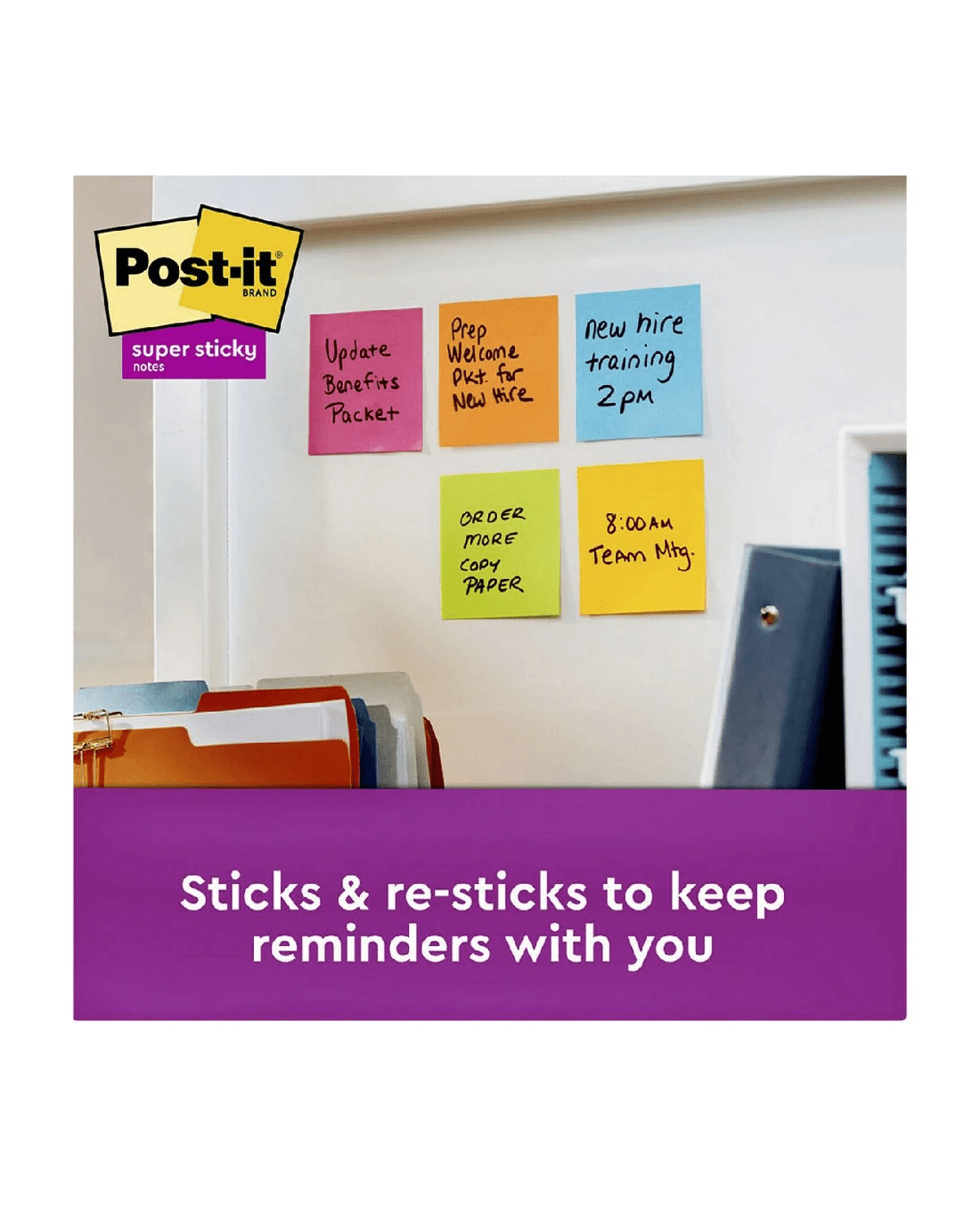 - Post-it Super Sticky Notes stick and re-stick so your thoughts get noticed and have 2X the sticking power.
