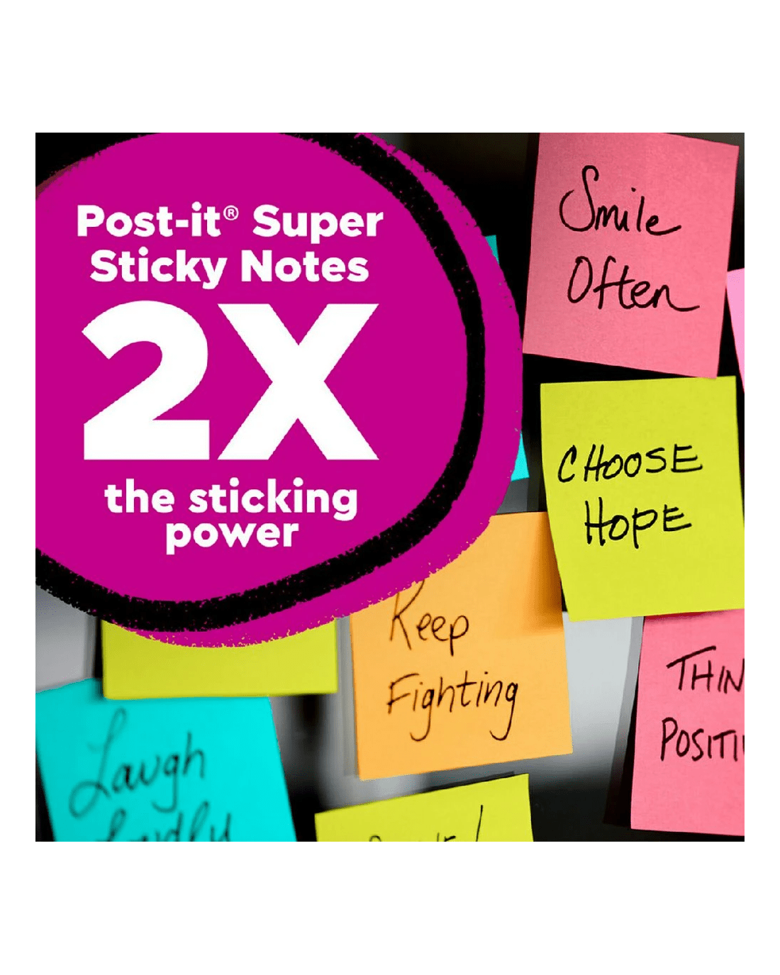 These Post-it Super Sticky Notes have an extra strong adhesive so you can be sure that your messages, reminders and lists will stay in place. These notes can be adhered almost anywhere and are ideal for use on vertical, textured and other difficult surfaces. They can easily be removed without leaving behind any residue and are repositionable so you can move your notes around.