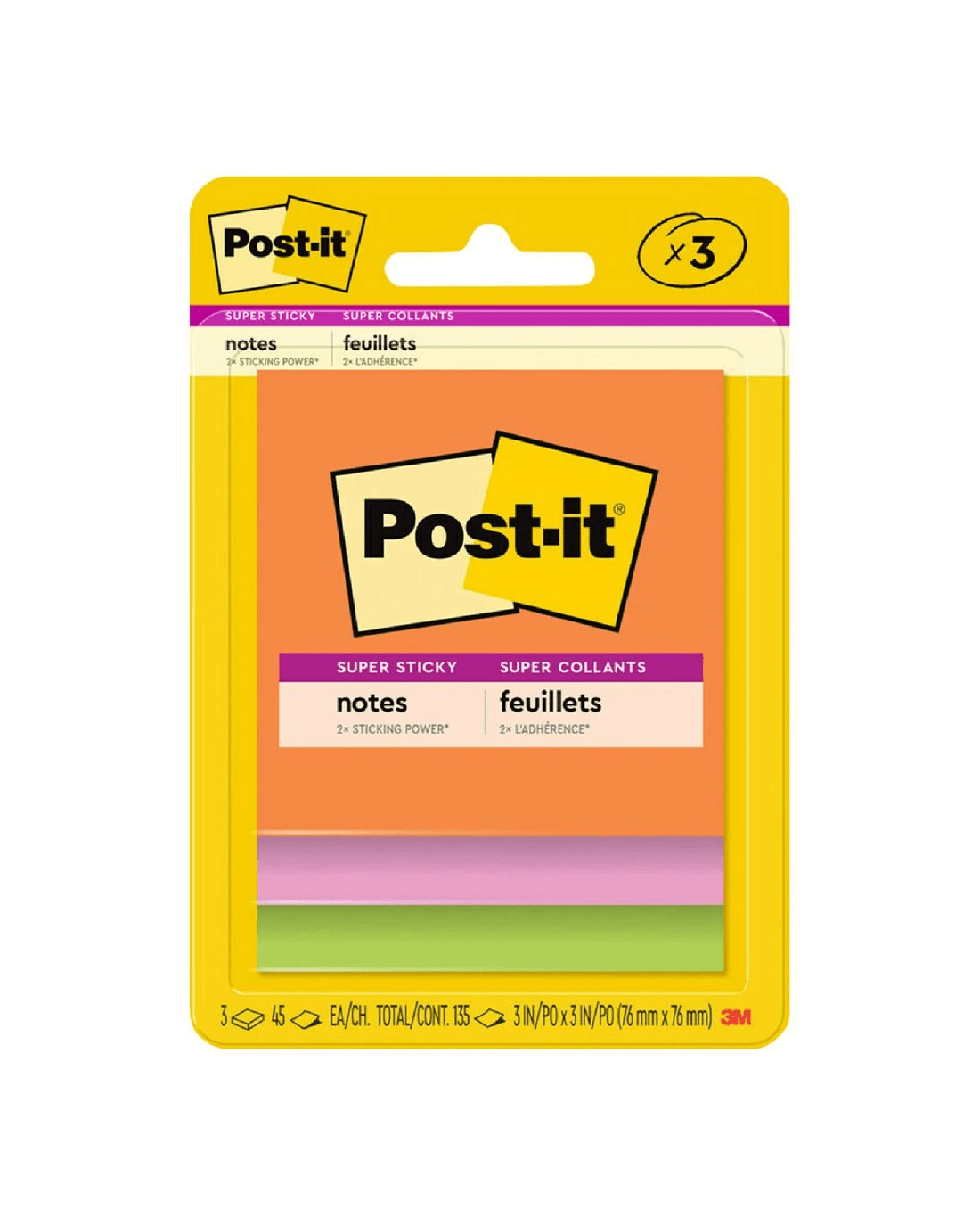 Post-it Super Sticky Notes 76 x 76mm Energy Boost 3 Pack