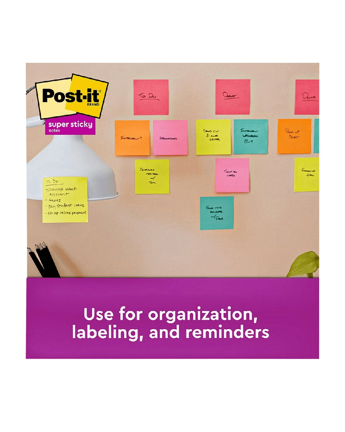 - Each note has a super strong adhesive backing so they can be applied to a range of surfaces.