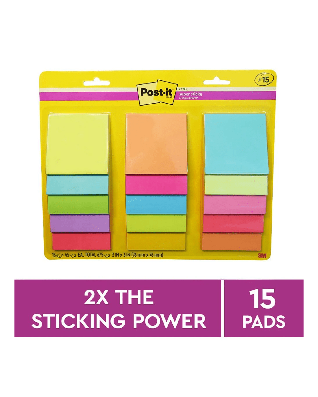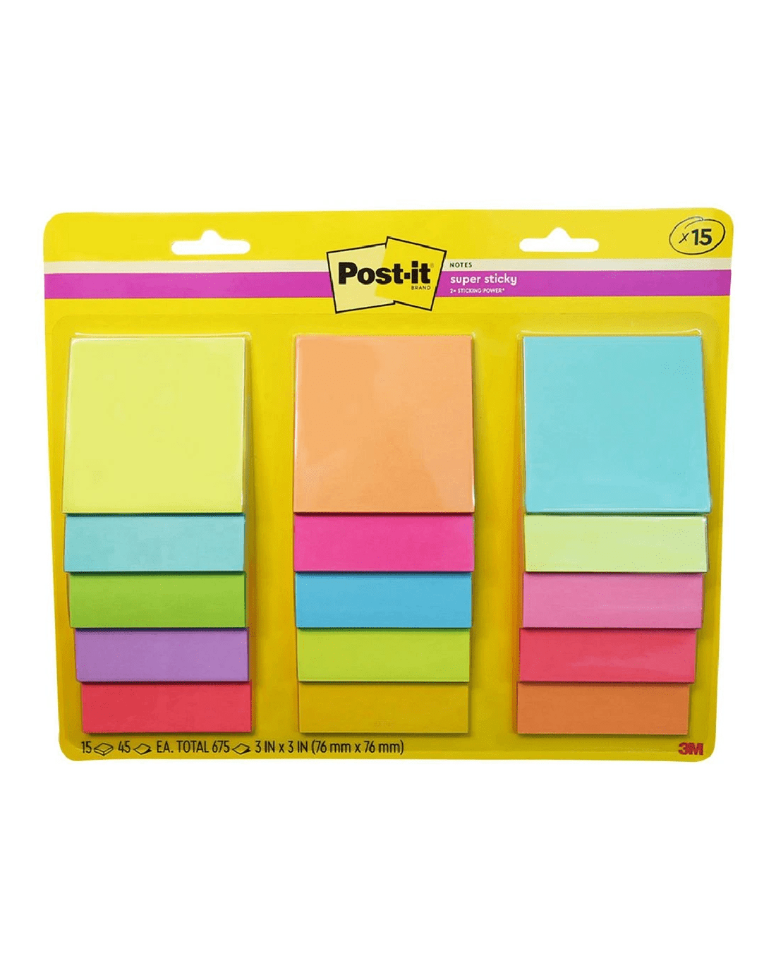 - There are 15 Post-it note pads included in this pack, 45 sheets in each pad for a total of 675 sheets, so you can ideal stock up all at once.