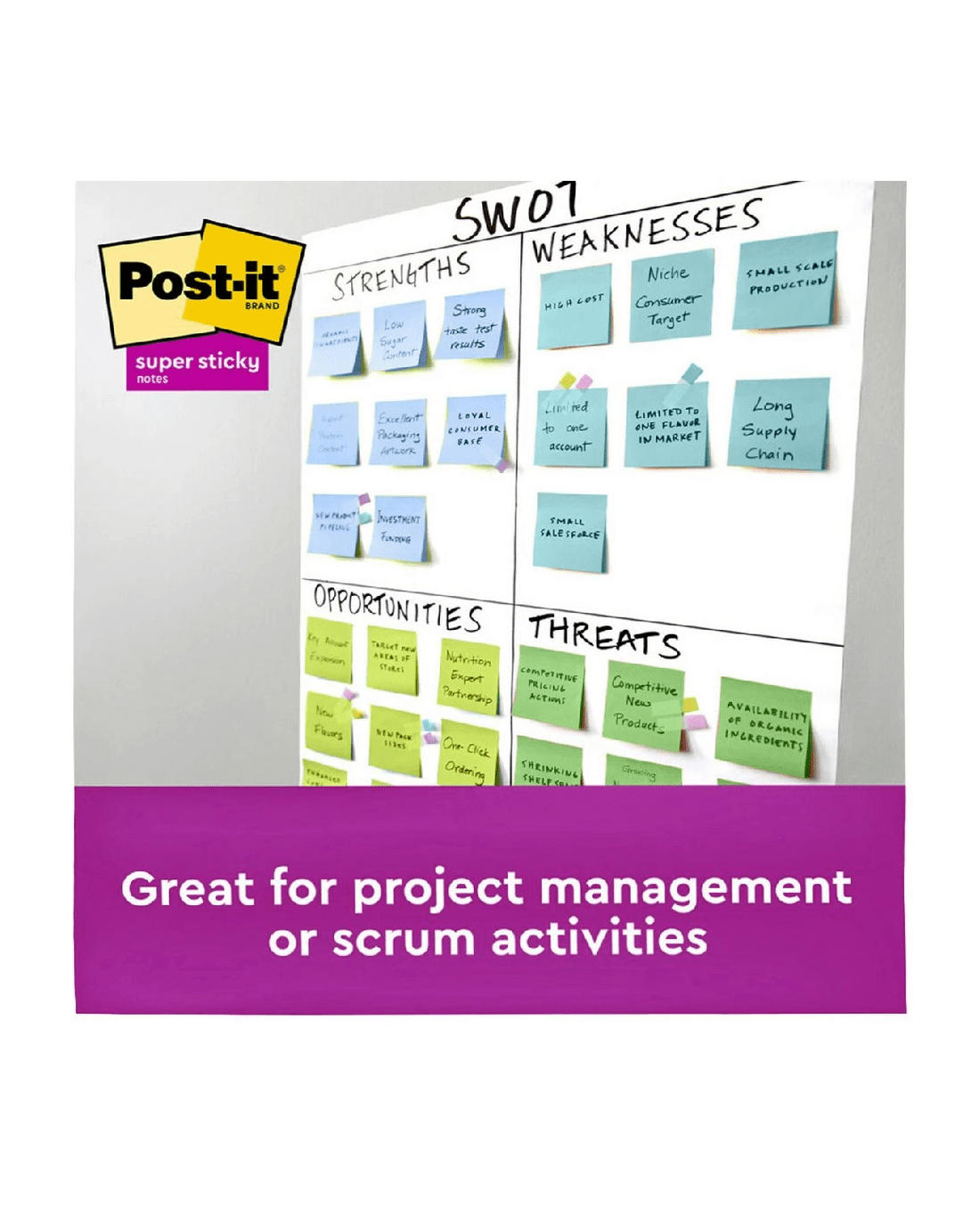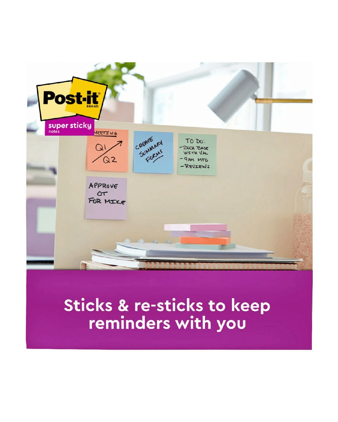 Post-it Super Sticky Notes are an easy way of leaving yourself reminders, to do lists and more. Each sheet has an extra strong, self-adhesive backing which will stick to almost any surface and remove easily when you're done.