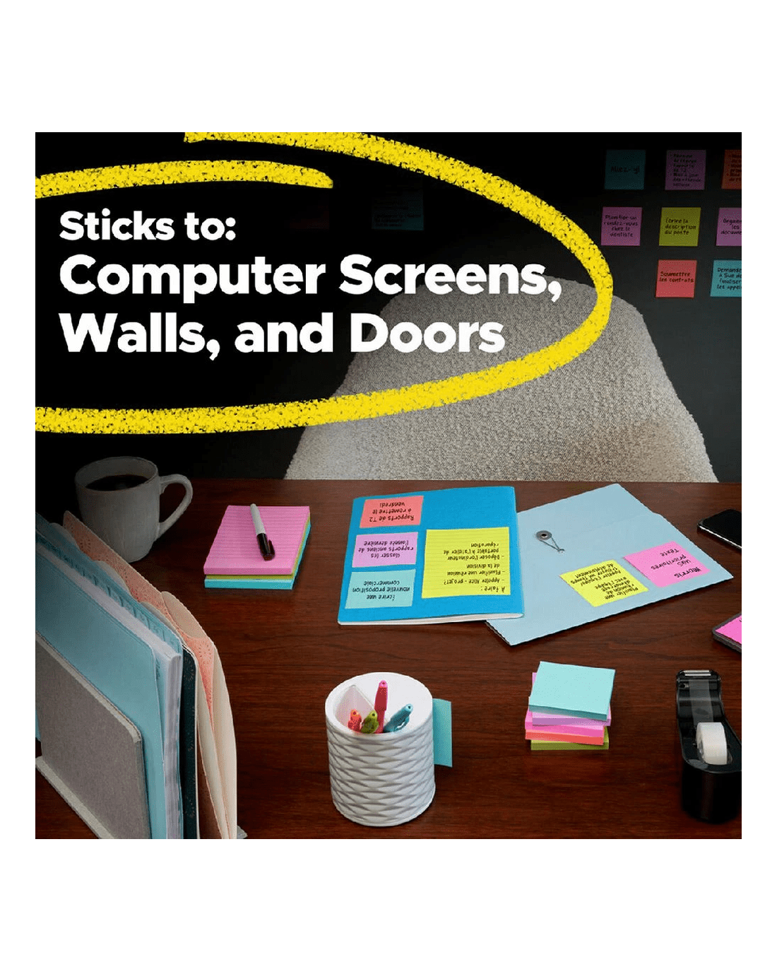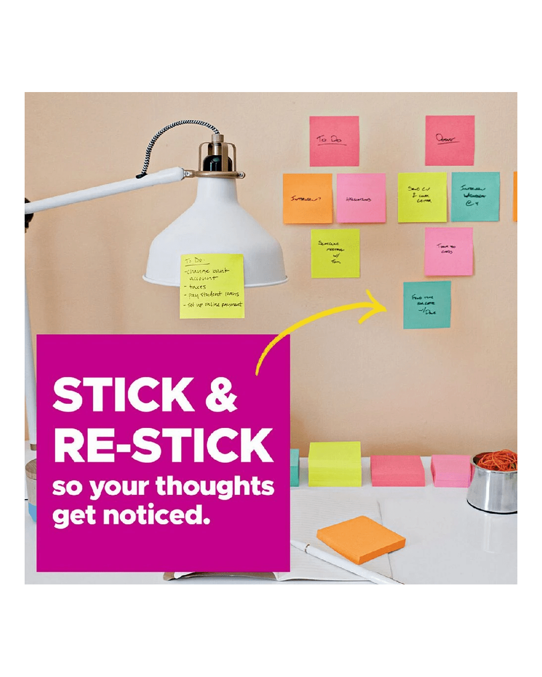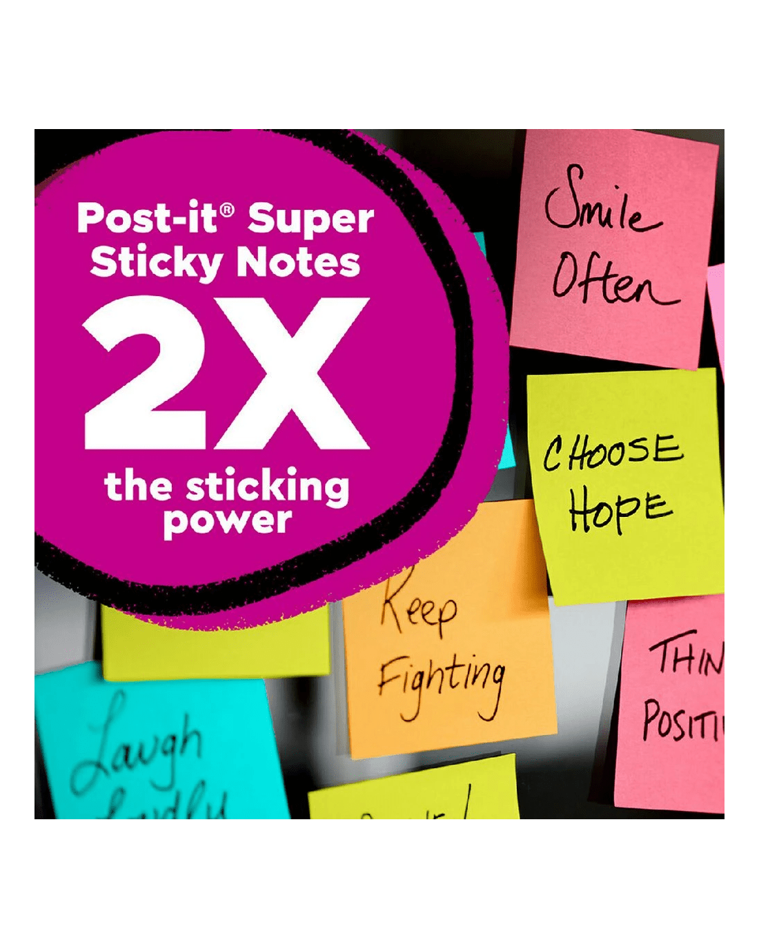 - Post-it Super Sticky Notes stick and re-stick so your thoughts get noticed and have 2X the sticking power.