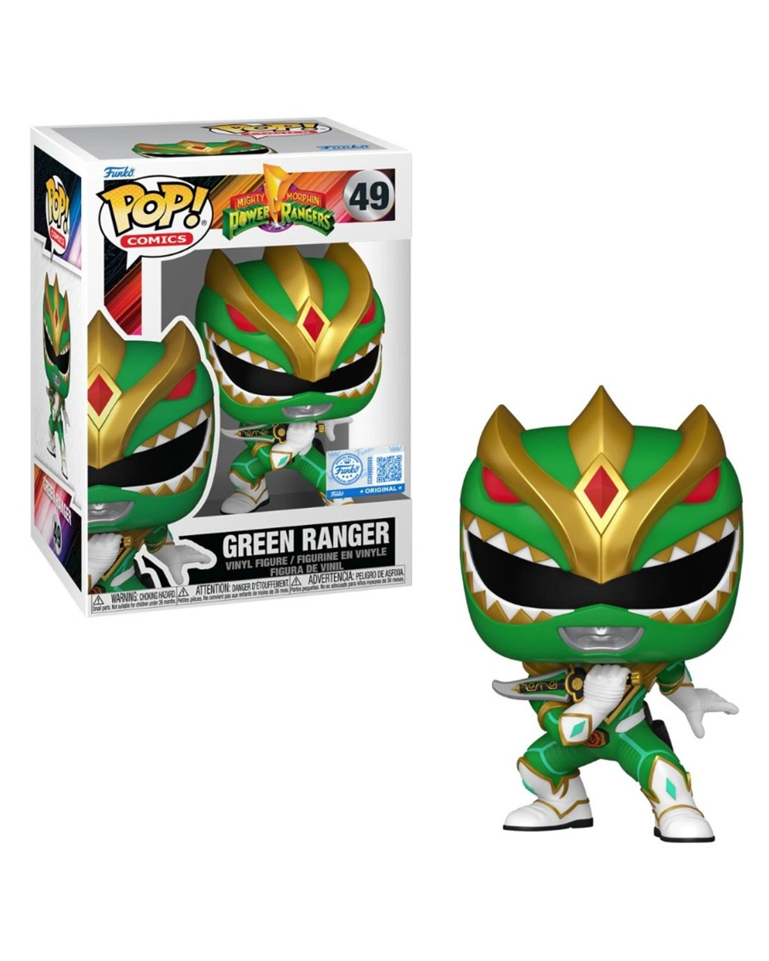 It's time to go-go Green! This detailed Pop! vinyl figure is a sculpture of none other than Matthew Cook, the Green Ranger! Based on his appearance in the Mighty Morphin Power Rangers Boom! comic book series, Matthew features his updated Green Ranger outfit and wields his Dragon Dagger as he strikes his next move. Standing about 4-inches tall, this Mighty Morphin Power Rangers Green Ranger Funko Pop! Vinyl Figure Ages: 3+