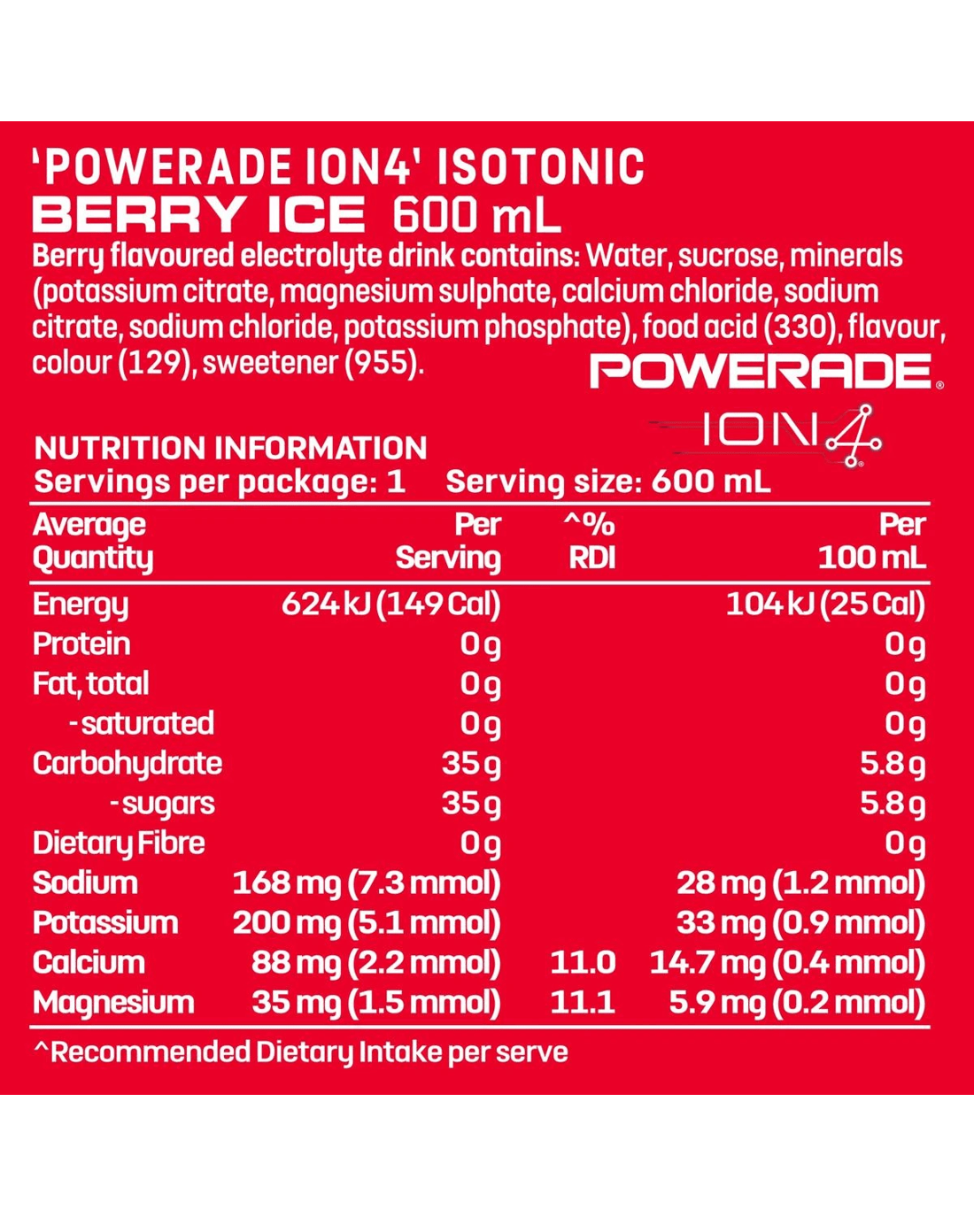 Sold by KmartPowerade Isotonic Berry Ice Sports Drink 600ml