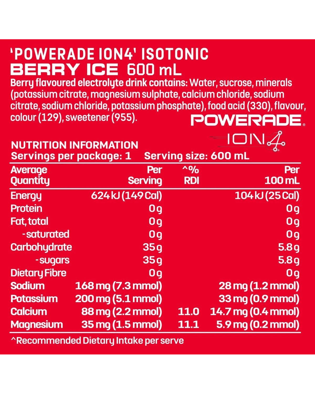 Powerade ION4 Isotonic Sports Drinks contain four electrolytes - Sodium, Potassium, Calcium and Magnesium - formulated to hydrate you fast when you need it most by replacing electrolytes and fluids lost in sweat.