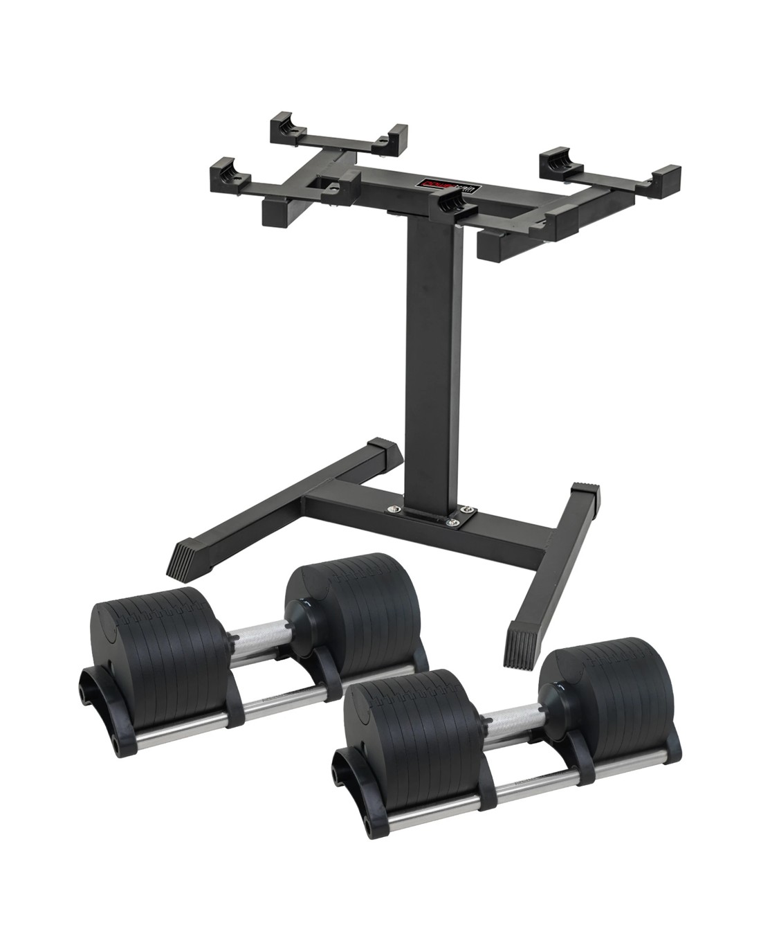 Powertrain 2x 36kg Eon Dial Up Adjustable Dumbbell Set with Stand - Black