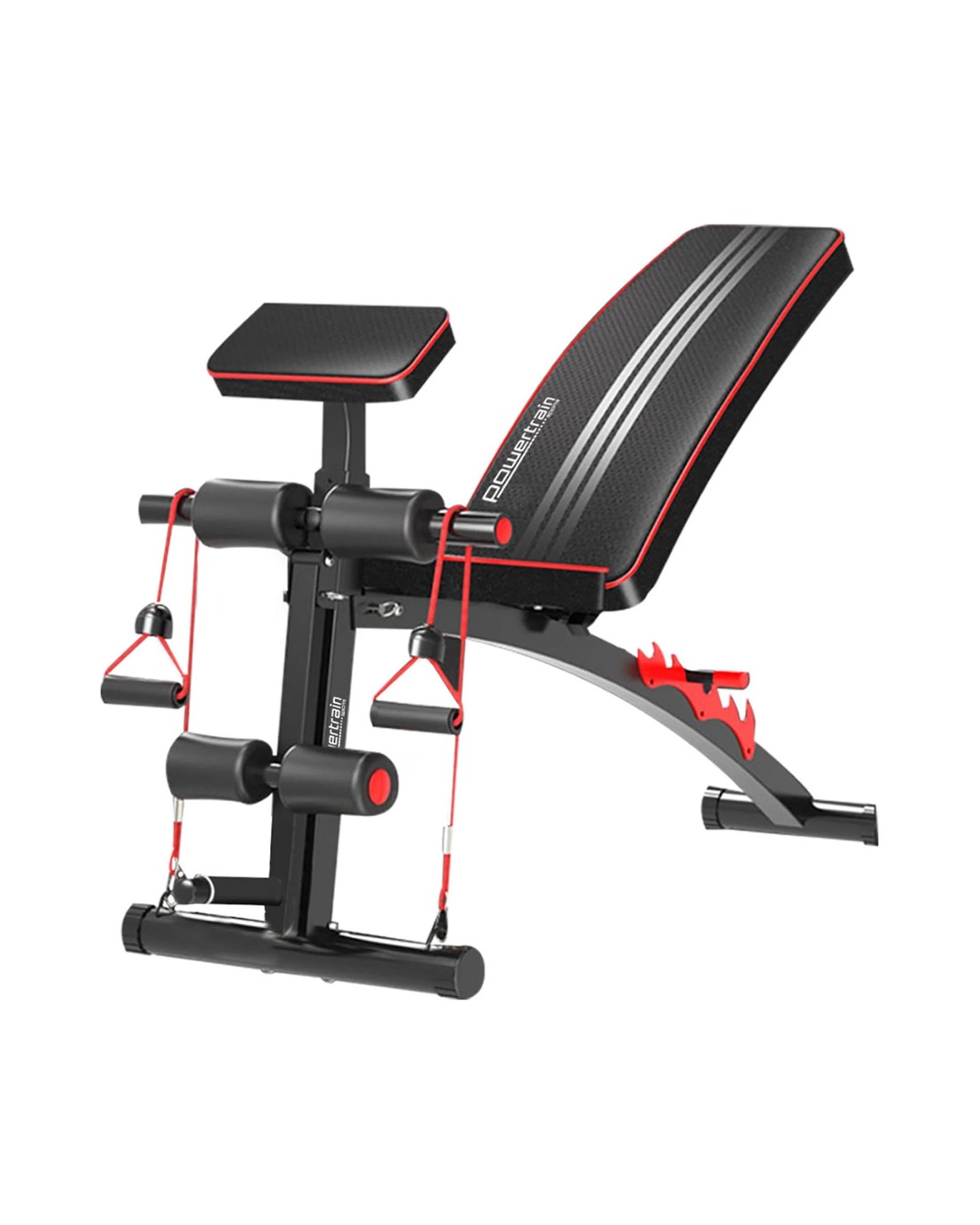 The Powertrain adjustable bench is just what you need to sit and do dumbbell arm curls and leg extensions, as well as being an incline-flat-decline bench press with a total load rating of 150kg. It also features preachers curl extension to develop those rounded guns.