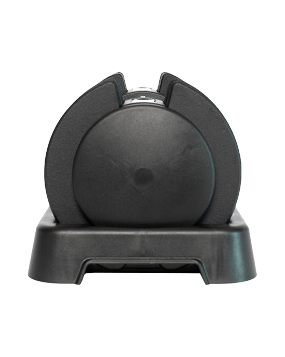The 360-degree handle allows for hassle-free switching, while the cast iron plates ensure maximum durability. No need for separate storage - the fitted base ensures that all the plates are aligned and ready to use at all times. And with 8 locking grooves built right into the holder, each lift is assured to be safe, secure and steady.