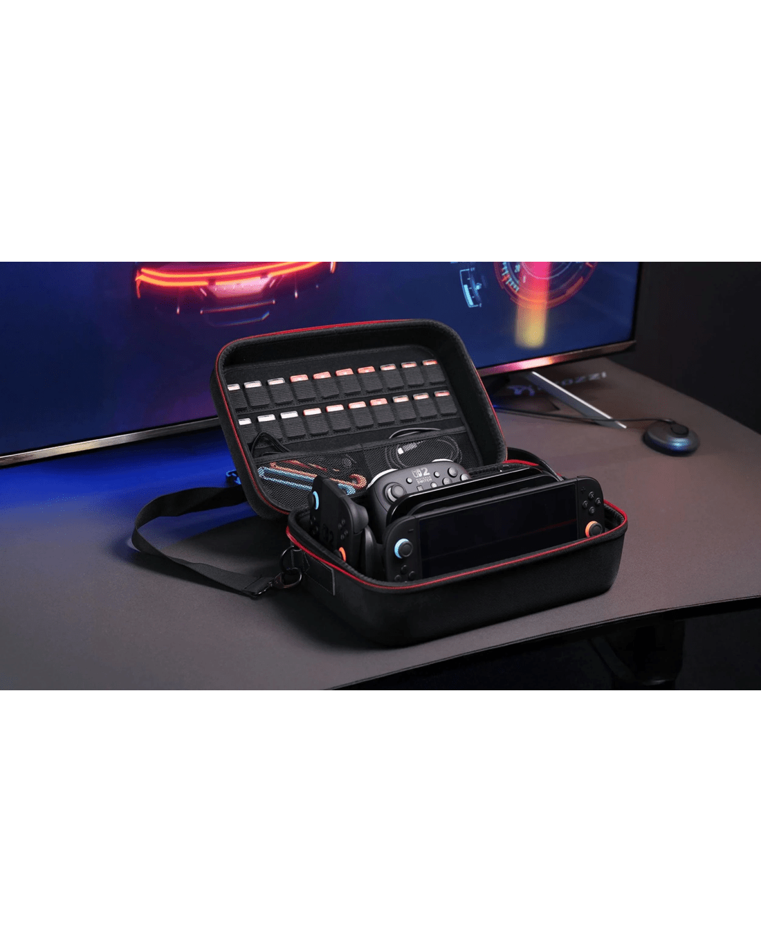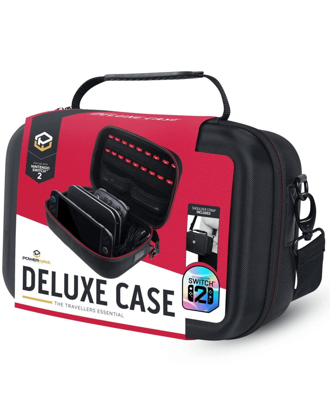Take your Nintendo Switch 2 everywhere with confidence, thanks to the Powerwave Case. Inside, custom-fit sections keep your console, dock, controllers, and charger neat and secure as you travel. The firm shell offers a reassuring layer of protection, while mesh pockets help you organise smaller items, so nothing gets left behind. With its convenient carry handle and removable shoulder strap, it's a breeze to transport, whether you're heading out for a weekend or just popping round to a friend's house. Make the most of every gaming opportunity and stay ready for adventure with this reliable carry case.