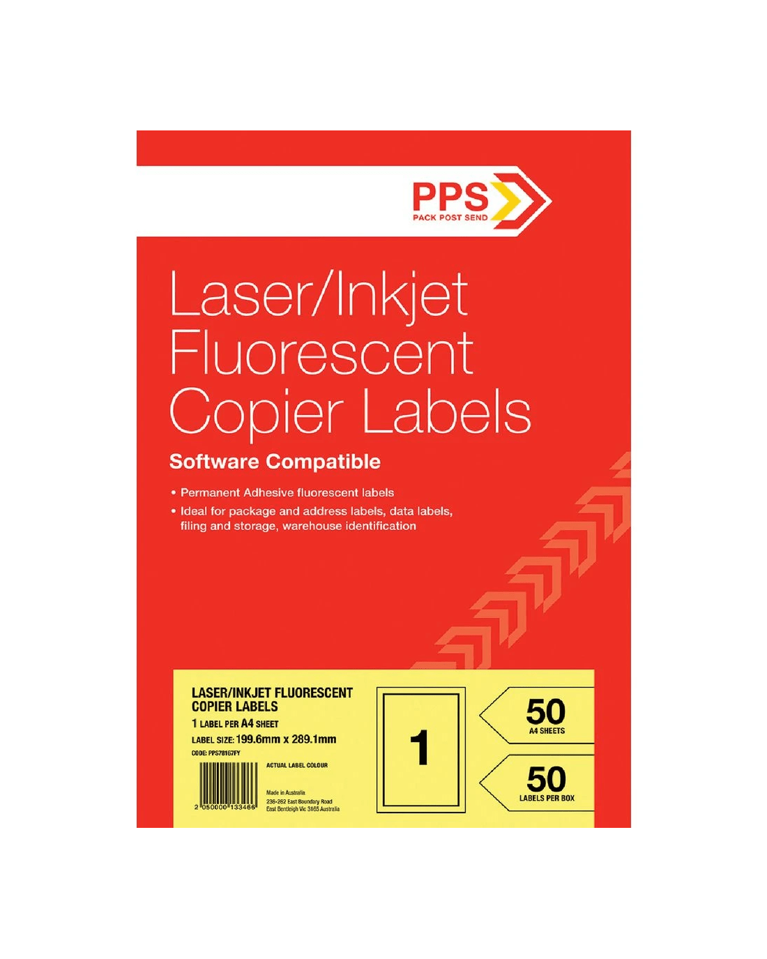 These PPS Fluoro Labels are bright and neon in colour so they can easily be seen and are ideal for use as shipping labels. These labels are compatible for use with printers and copiers so you can create neat and personalised labels. They are permanently adhesive which makes them a great option for long term use.