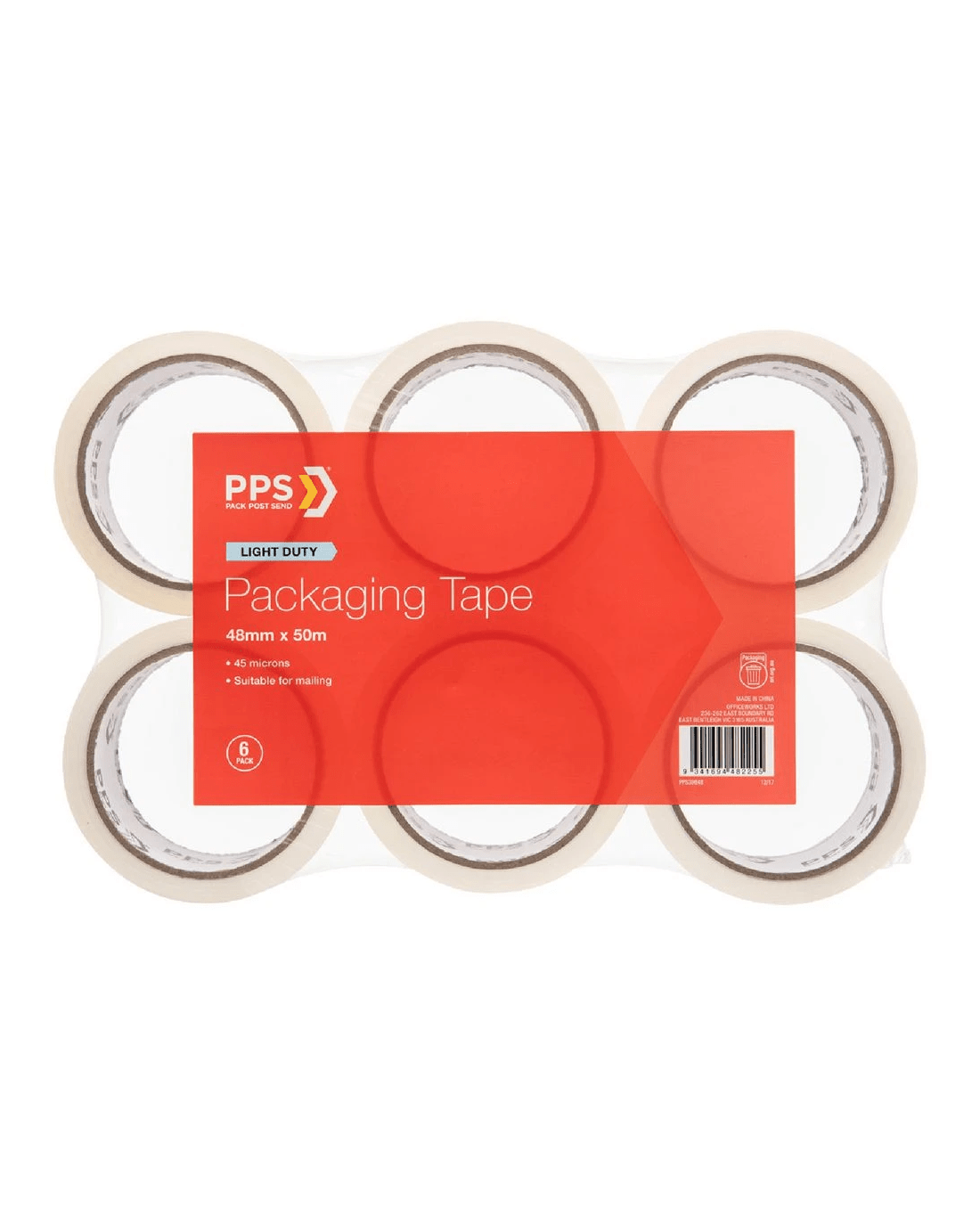 PPS 48mm x 50m Light Duty Packaging Tape Clear 6 Pack