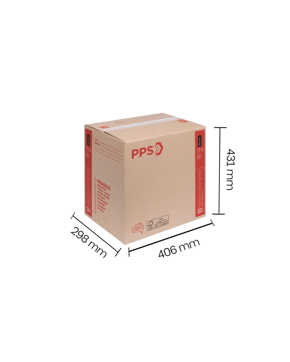 Sold by OfficeworksPPS Heavy Duty Moving Boxes Medium 406 x 298 x 431mm 10 Pack
