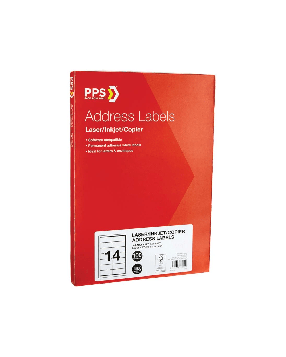Sold by OfficeworksPPS Inkjet Laser Address Labels 14UP 100 Sheets