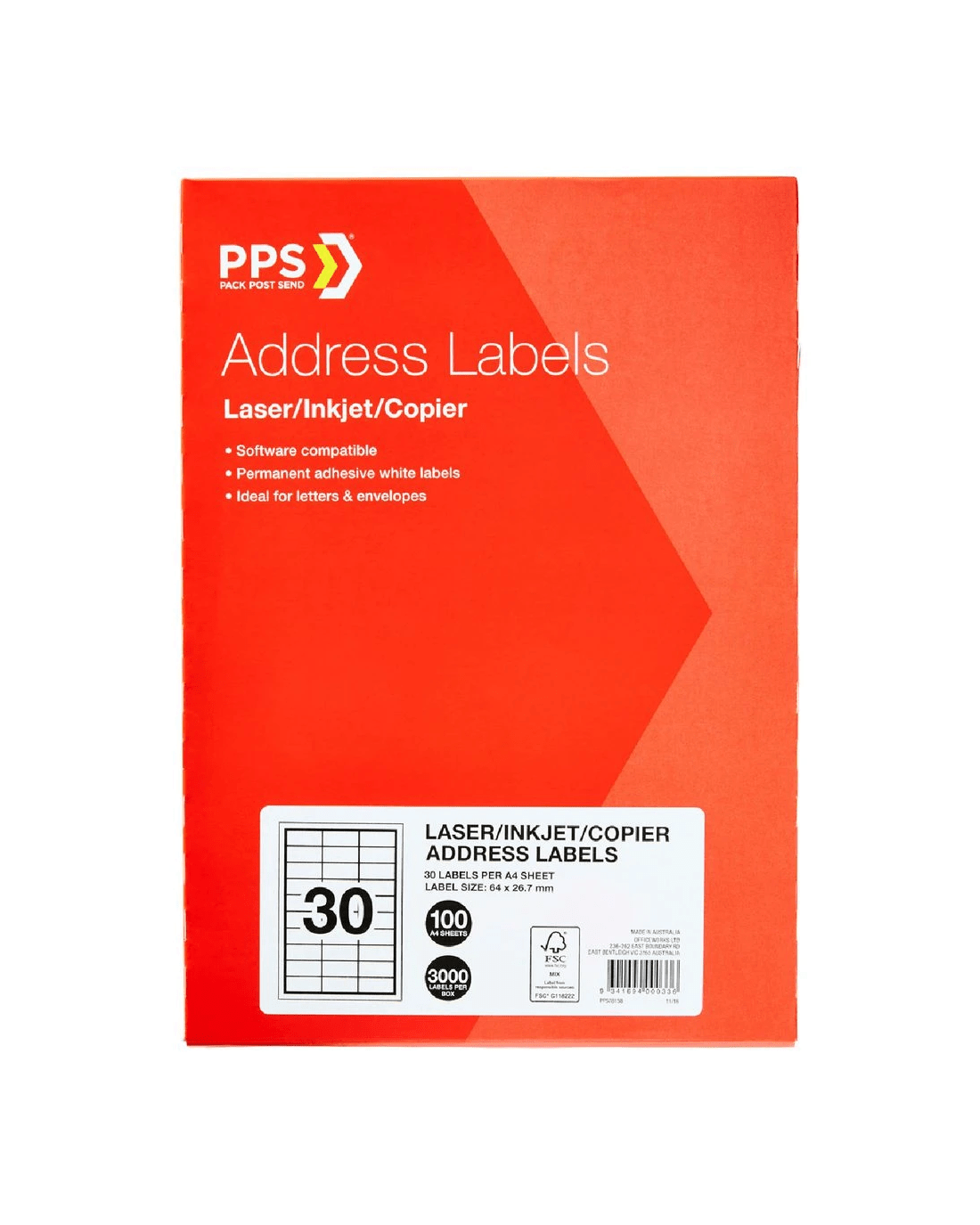 Sold by OfficeworksPPS Inkjet Laser Address Labels 30UP 100 Sheets