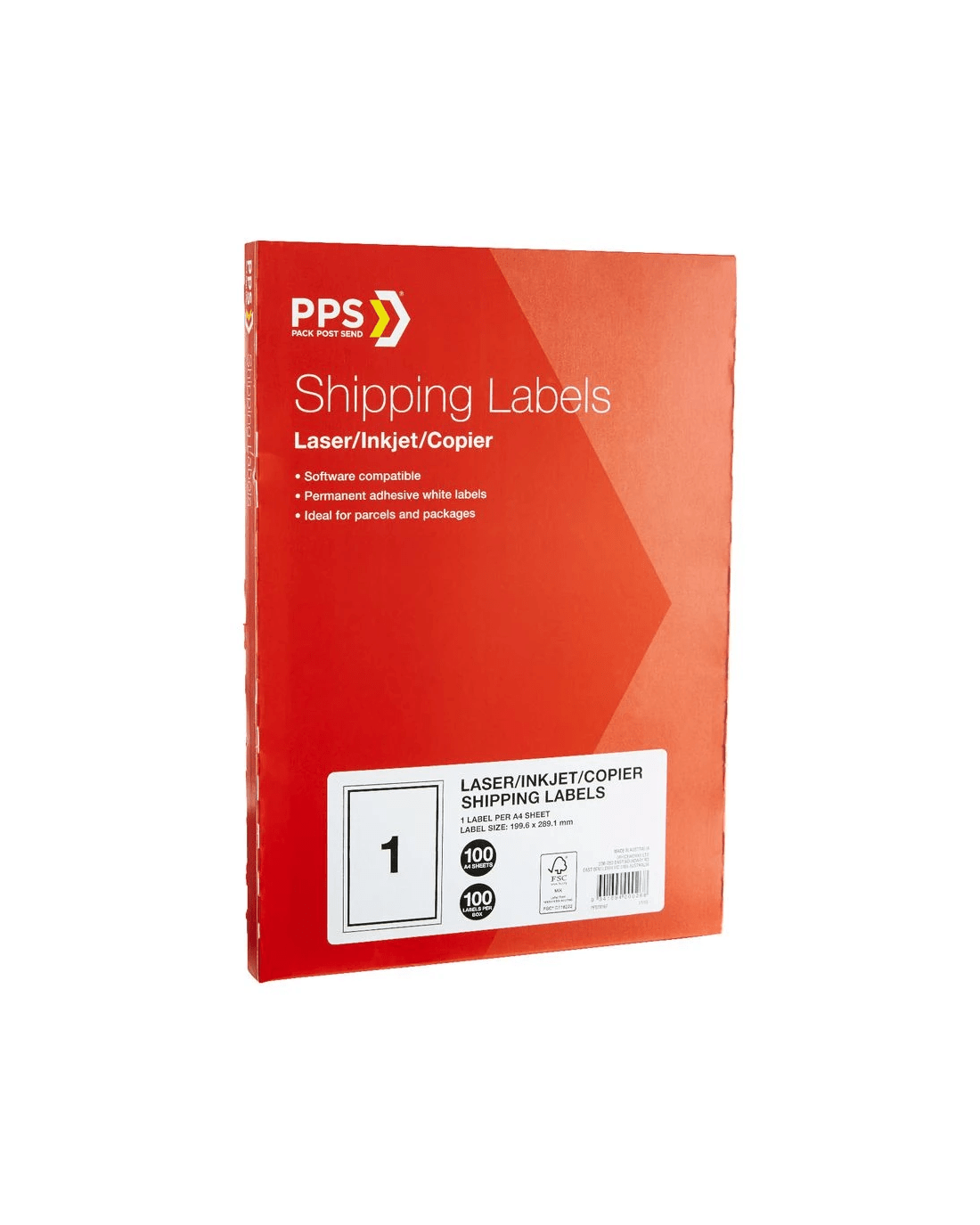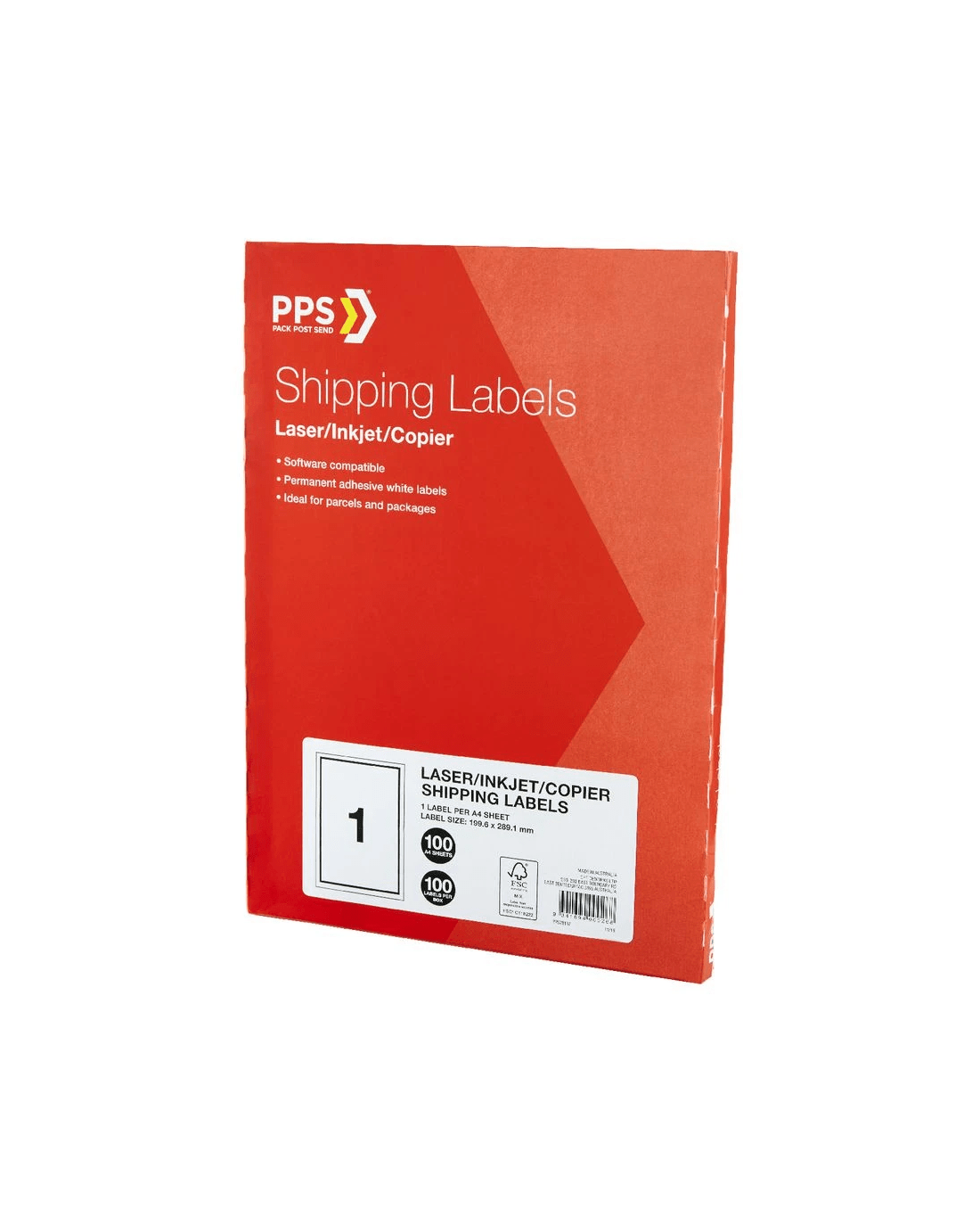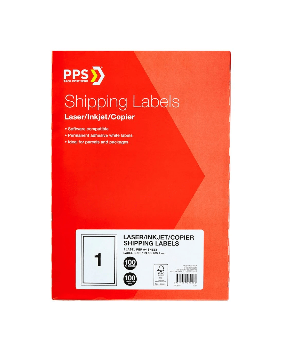 Sold by OfficeworksPPS Inkjet Laser Shipping Labels 1UP A4 100 Sheets
