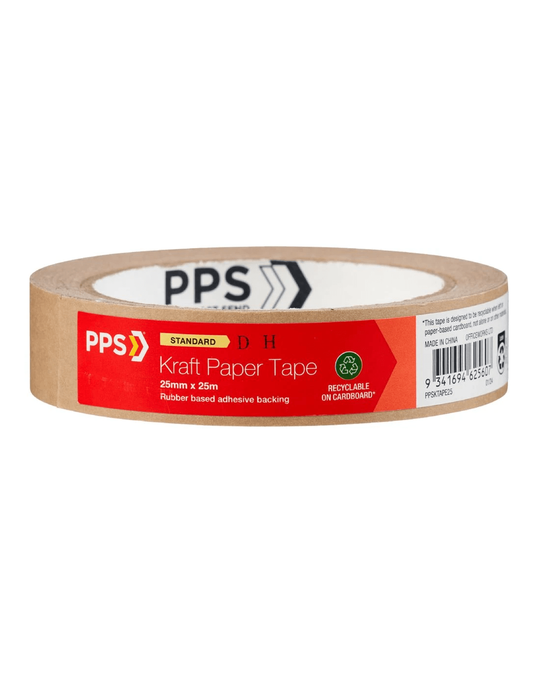 This PPS Kraft Paper Tape is a great alternative to plastic tape when sealing boxes, cartons, and more. It has a width of 25 mm and a length of 25 m, as well as a sturdy construction to remain secure.
