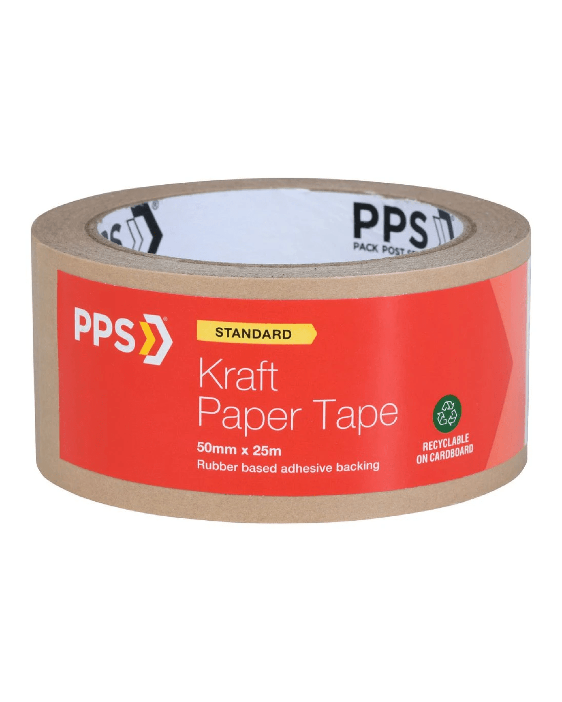 This PPS Kraft Paper Tape is a great alternative to plastic tape when sealing boxes, cartons, and more. It has a width of 50 mm and a length of 25 m, as well as a sturdy construction to remain secure.