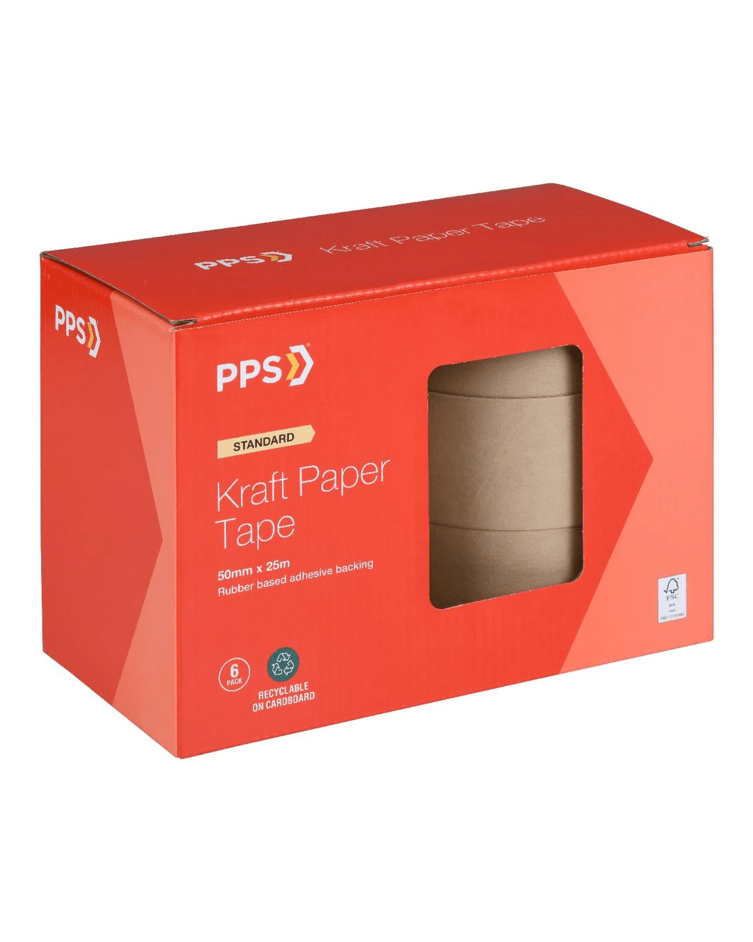 This PPS Kraft Paper Tape is a great alternative to plastic tape when sealing boxes, cartons, and more. It has a width of 50 mm and a length of 25 m, as well as a sturdy construction to remain secure.