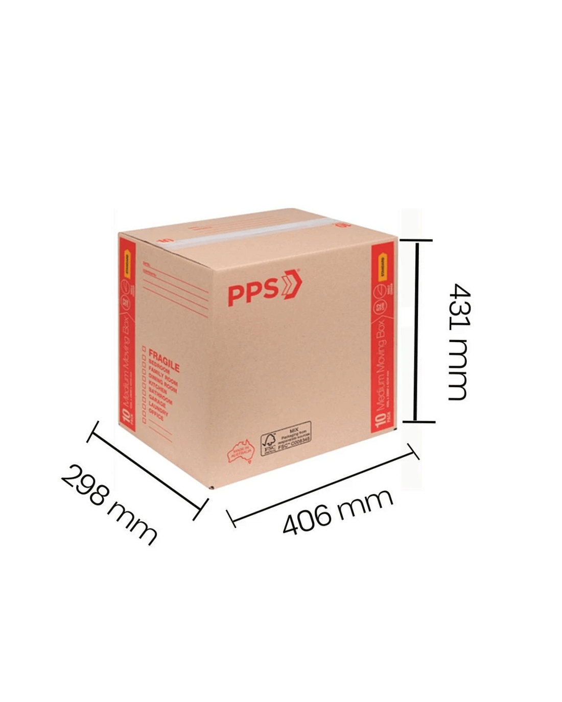 Sold by OfficeworksPPS Moving Boxes Medium 406 x 298 x 431mm 10 Pack
