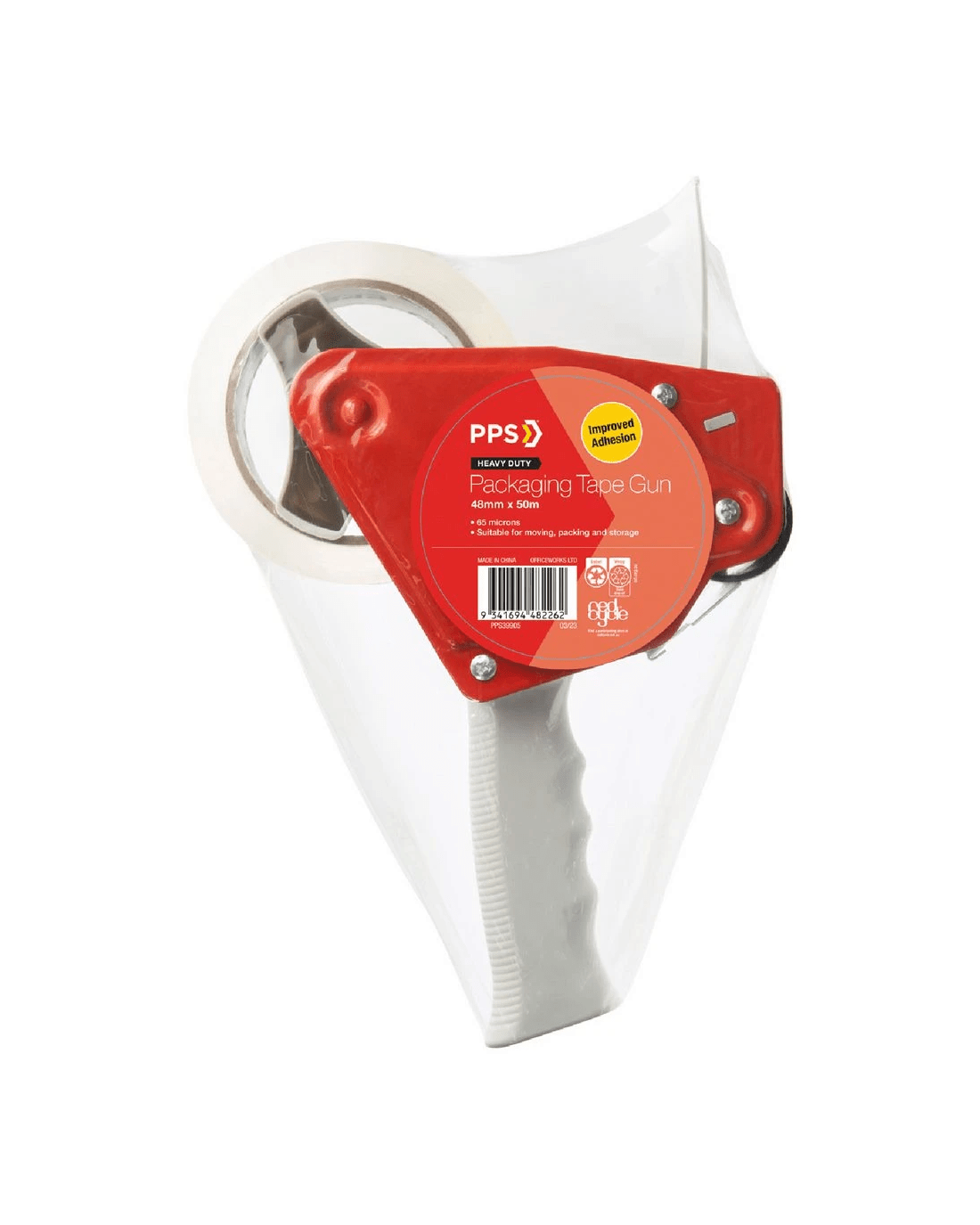 The PPS Packaging Tape Dispenser has a heavy duty construction to withstand regular use. It comes with a roll of PPS Moving Tape which performs well in both hot and cold temperature conditions. It's ideal for packing your belongings to move house, sealing boxes for storage and even for use to seal packages and parcels for postage.