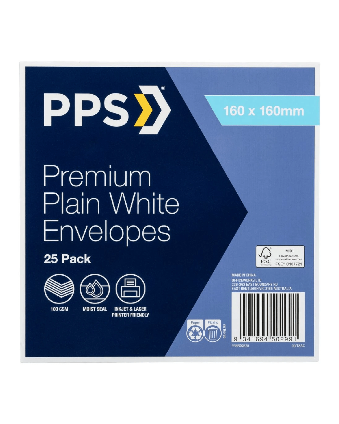 Sold by OfficeworksPPS Premium Square Envelopes 160 x 160mm White 25 Pack