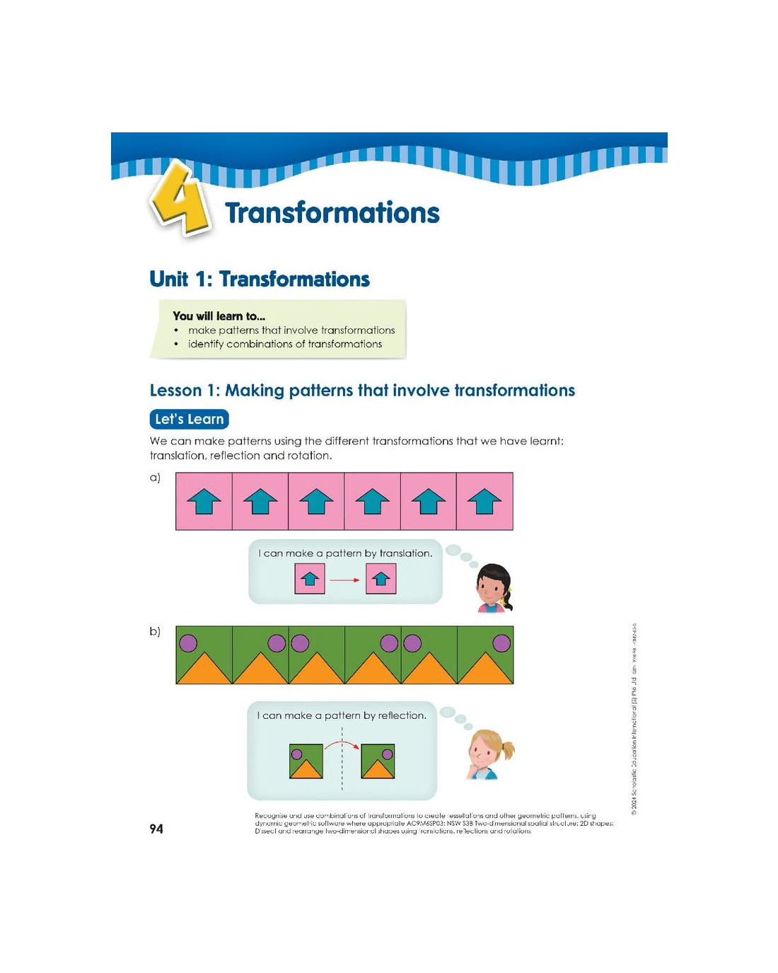 - Each lesson starts with an explicit, teacher-led activity that models mathematical thinking and problem solving, followed by ‘guided’ activities to allow students to apply their understandings.
