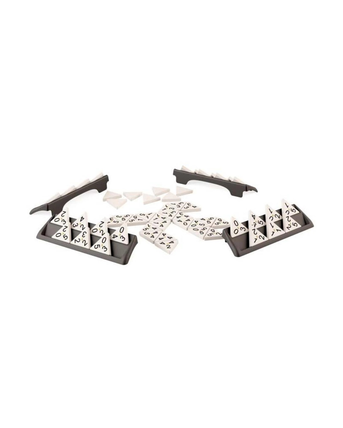 With more than 21 million games sold, Triominos® adds a third dimension to the classic game of dominoes. And if you know how to play dominoes you already know how to play Triominos, so you can start playing right away. Triominos®' combination of luck and skill means that you can beat your friends fair and square (or should we say, fair and triangularly?). Each tile is a  triangle with numbers that  are matched on each side. Players  lay tiles that match up to other tiles in the play area, with the goal to get points and be rid of tiles  Each triangle has 3 numbers at the points, so to place a piece next to it, it must match two numbers on the side. he first player to reach 400 points in the winner. If a player reaches 400 points in the middle of a round, play is continued until the round ends. If more than one player reaches 400 points during the round the winner of that round wins the game. Ages 7 + | 2 - 4 Players