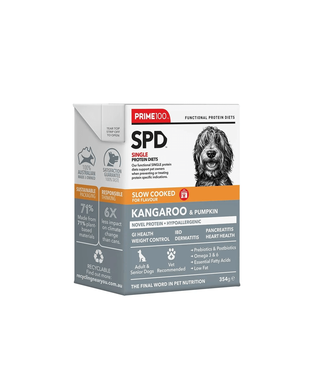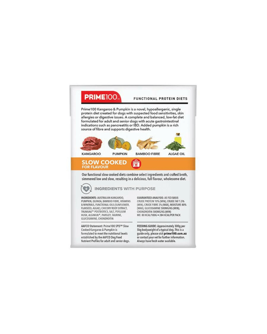 Prime100 SPD Slow Cooked - Kangaroo & Pumpkin is a functional single-protein diet.