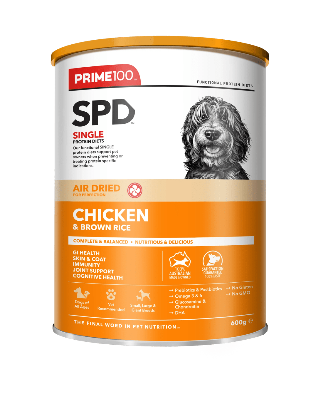 Single protein recipes are an excellent choice for dogs with food sensitivities or allergies. Give your dog the healthy and delicious meal they deserve with Prime100 SPD Air Chicken and Brown Rice — a complete and balanced diet made from premium Australian ingredients.