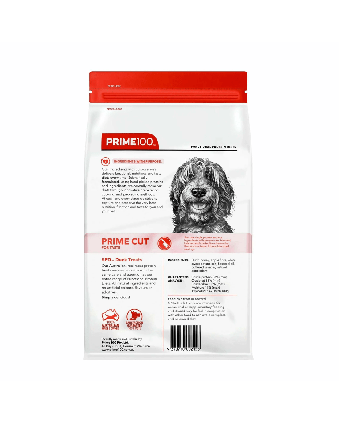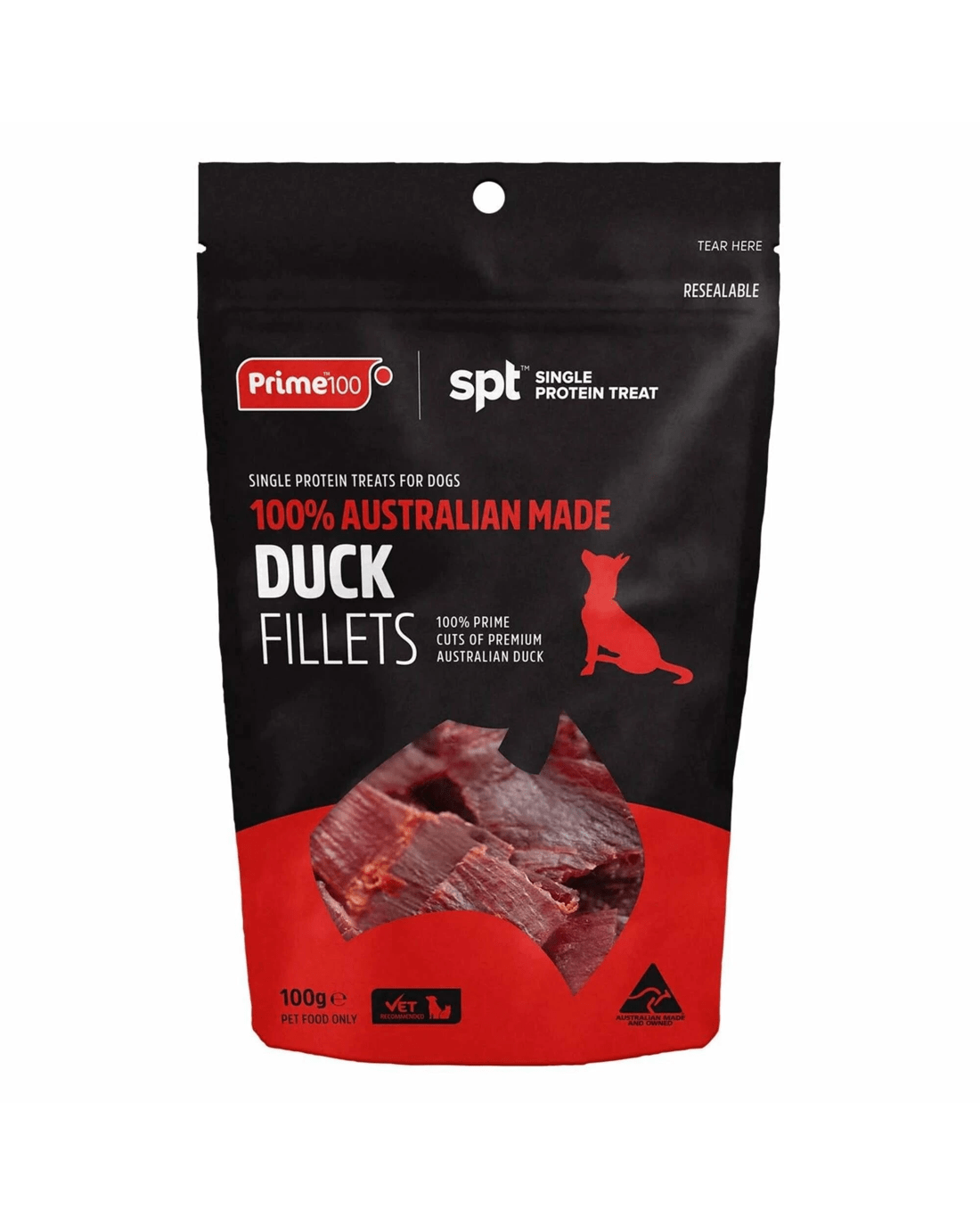 Prime100 SPT 100% Australian Made Duck Fillets are a new hypo-allergenic treat for dogs or cats. Every Duck fillet contains 100% premium cuts of Duck which provides a rich single source of an advanced novel protein. 100% of this product is sourced within Australia and contain no cheap fillers.