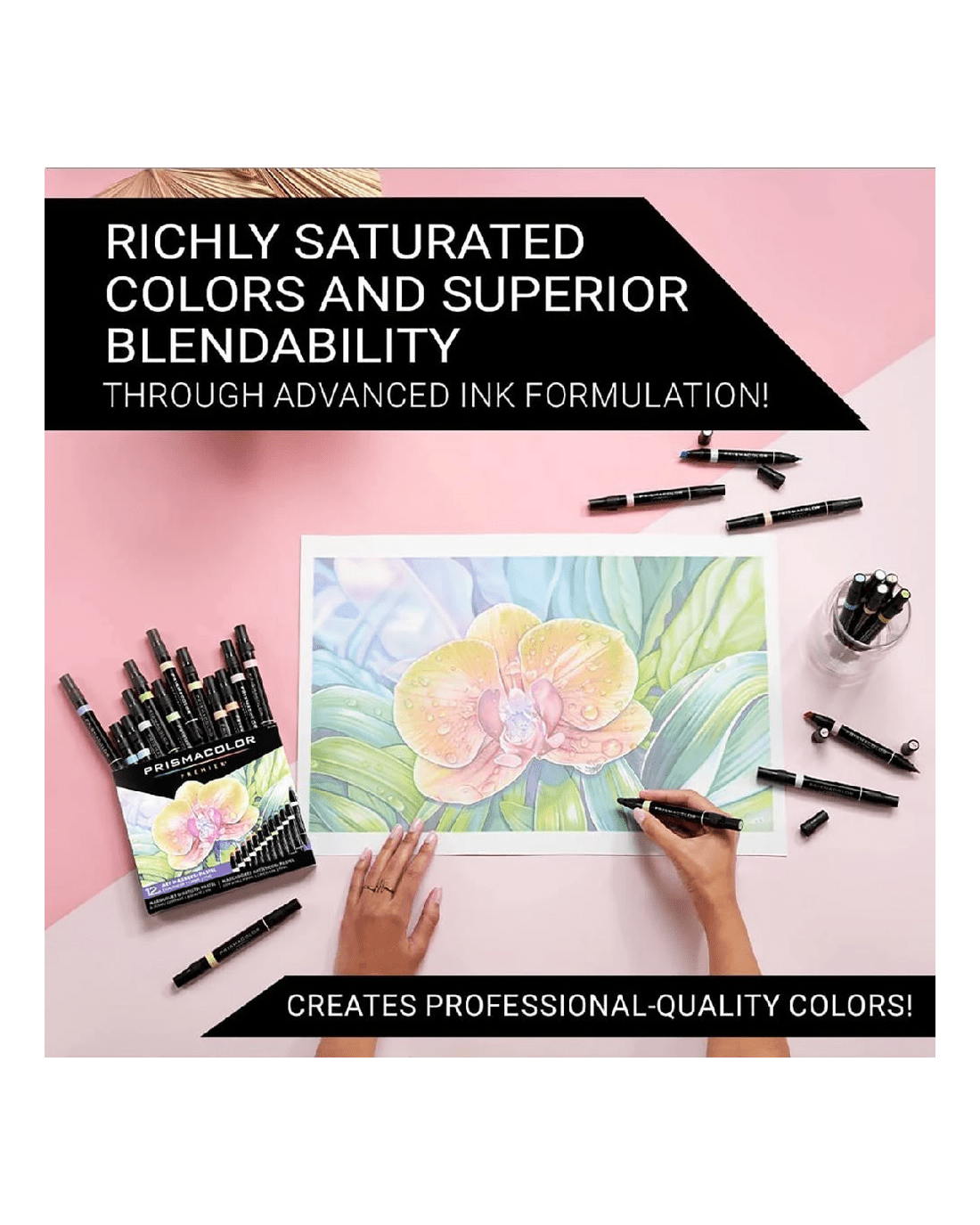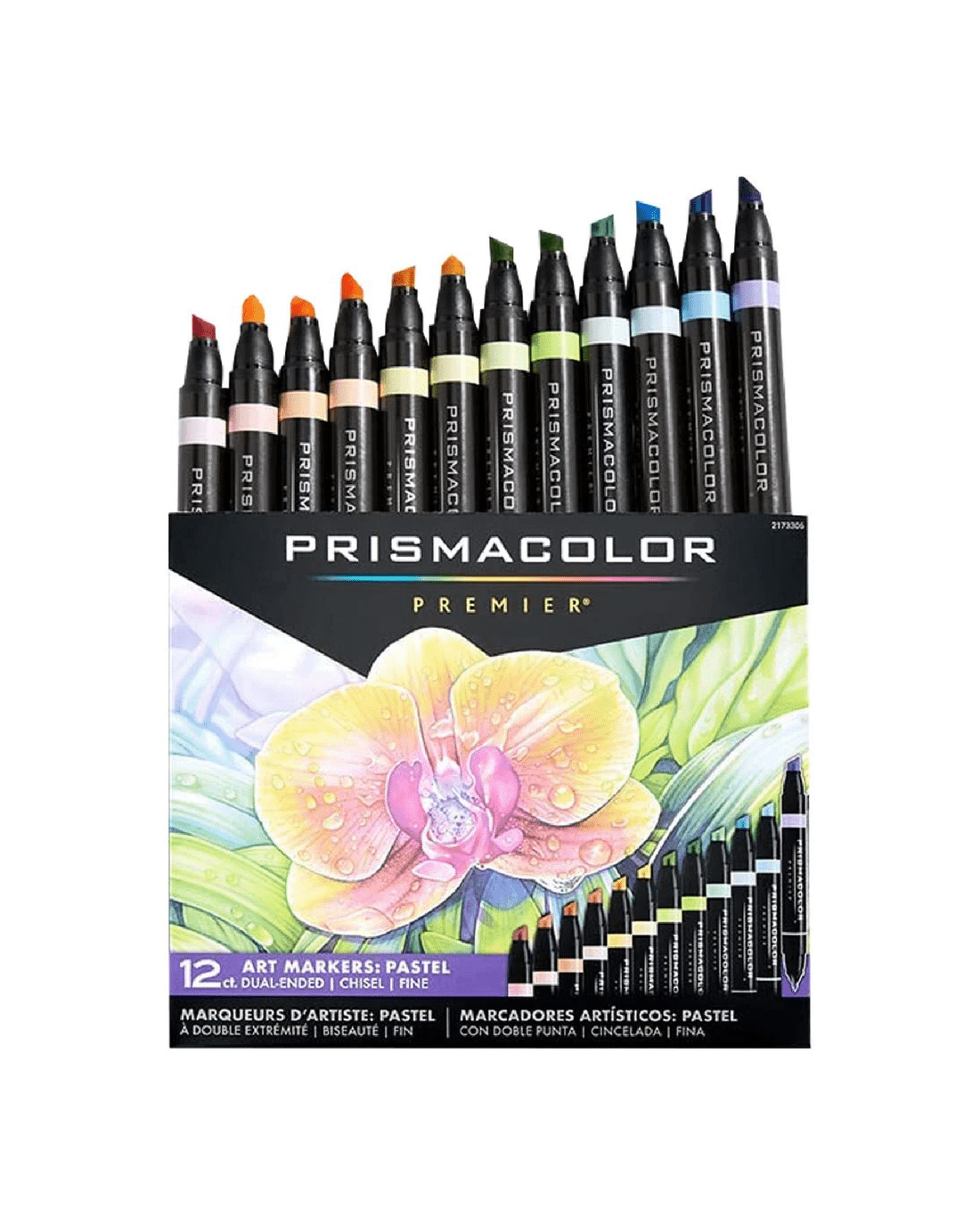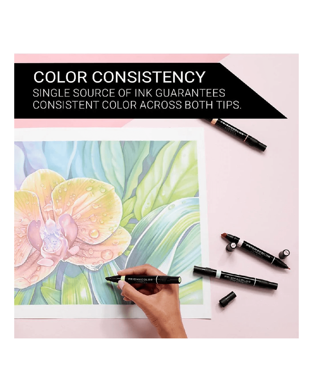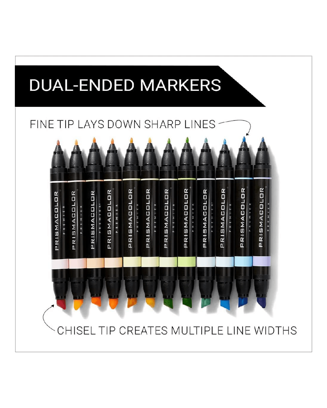 These Prismacolor Art Markers are a great addition to your creative setup. The dual ends provide a fine tip and a large chisel tip, so you can switch between line widths as you work on your next masterpiece. They have an advanced ink formulation for richly saturated colour production on your canvas.