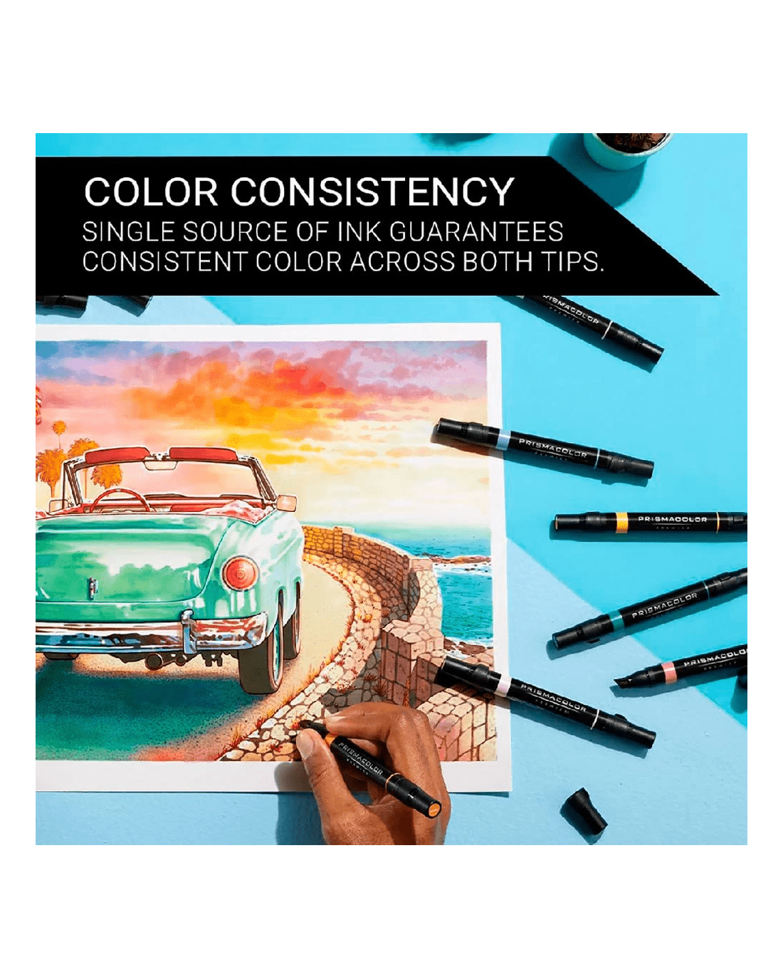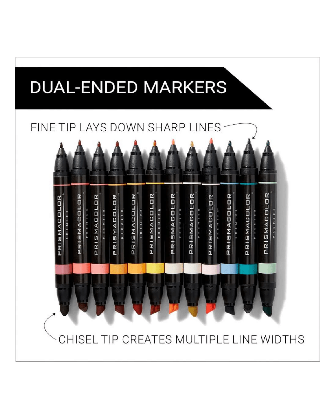 These Prismacolor Art Markers are a great addition to your creative setup. The dual ends provide a fine tip and a large chisel tip, so you can switch between line widths as you work on your next masterpiece. They have an advanced ink formulation for richly saturated colour production on your canvas.