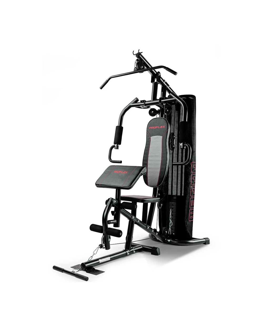 The M8000 is constructed from heavy-duty, powder-coated tubular steel that is sure to stand the test of time and features large, non-slip rubber feet that will prevent unwanted movement. PROFLEX maintain their reputation for quality with high-density cushioning and their choice of soft, sweat-proof materials. The leg, foot, and arm holds thick padding offers support so you feel in complete comfort while you workout. The included cable attachments have rubber handles so you can maintain a firm grip no matter how heavy you chose to lift.