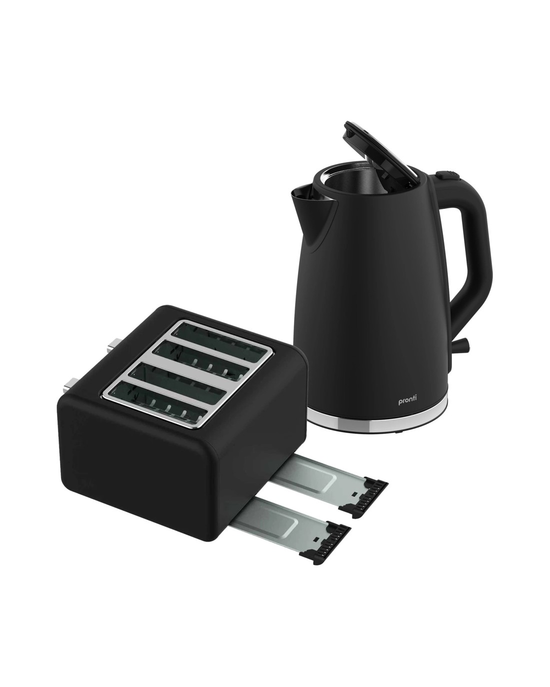Sold by Klika GroupPronti Silver Noir Collection 4 Slice Toaster and Kettle Bundle