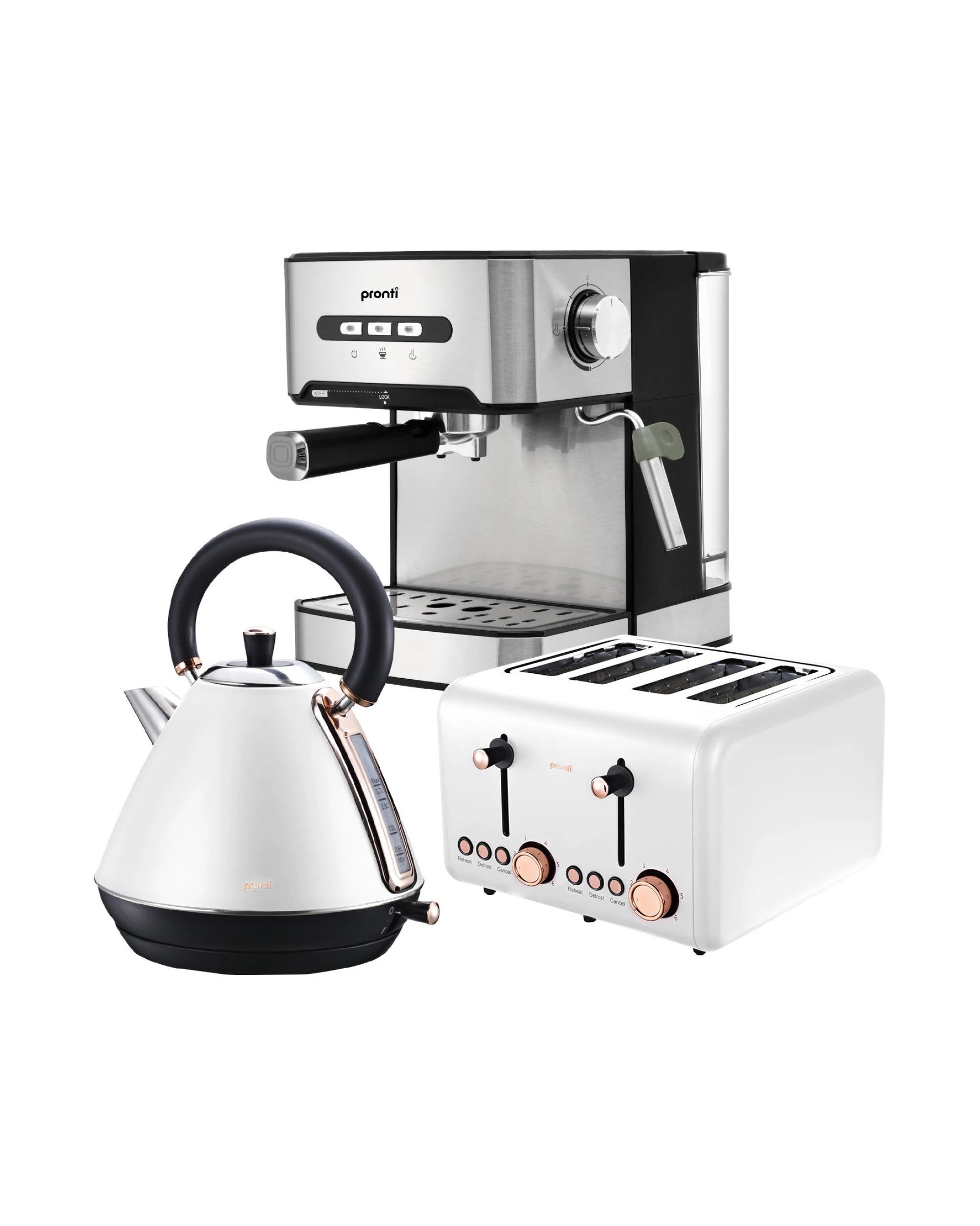 Pronti Toaster, Kettle And Coffee Machine Breakfast Set - White
