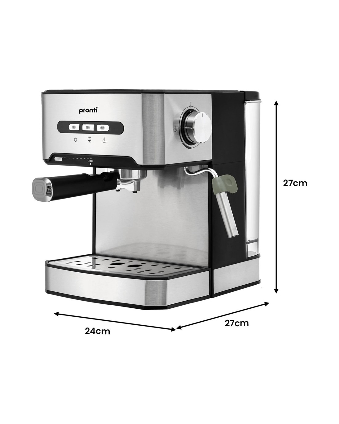 In the mood for a cappuccino? Pronti's 1.6L espresso machine features a built-in steamer wand to produce delicious and frothy milk for your coffee!