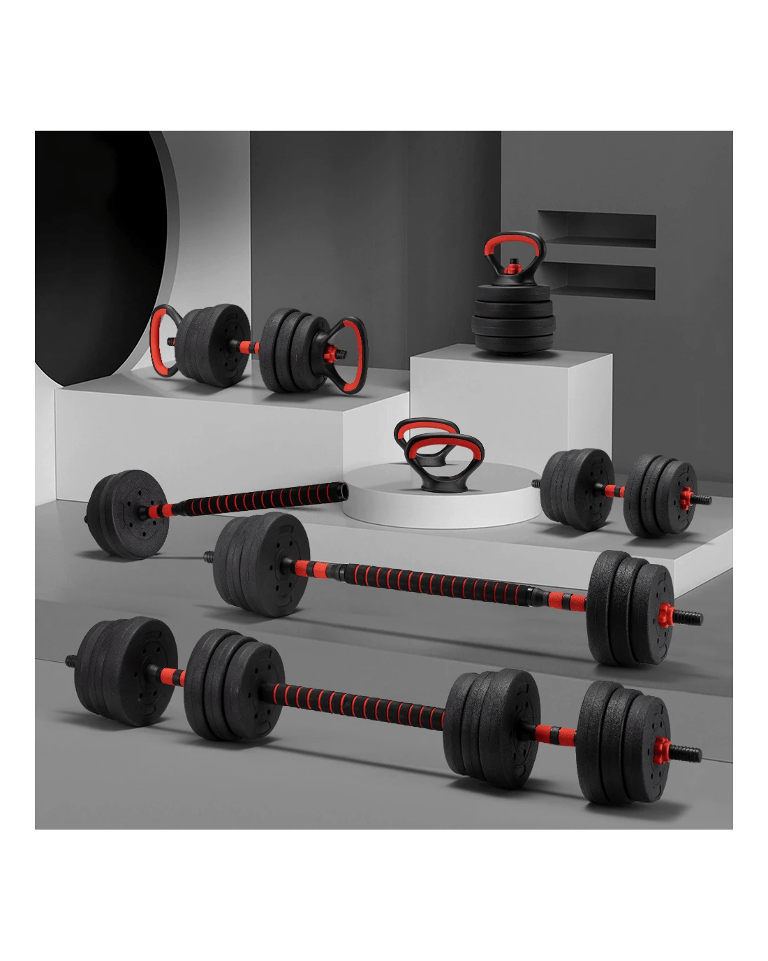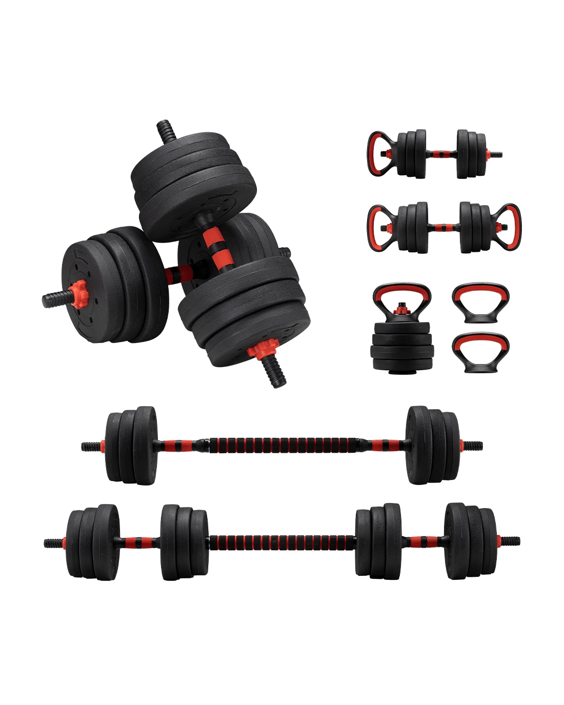 Skip the hassle of packing, driving, and navigating a crowded gym. Elevate your workout with ProPulse versatile dumbbell set. Easily set up your personal gym anywhere-at home, in the office, or outdoors. Its detachable design transforms any space into your ideal workout zone, making fitness more convenient than ever. Whether you aim to build strength, boost endurance, enhance balance, or increase flexibility, our 7-in-1 set is your perfect solution. Effortlessly convert between weight plates, dumbbells, barbell, macebell, kettlebell, two-handle kettlebell, and push-up stands for a customized workout. With adjustable weight plates, you can easily customize the load to match your workout needs. Enjoy a secure, non-slip grip with our handles, and say goodbye to shoulder and neck discomfort with our foam-wrapped barbell bar. Top-grade weight plates and rubber-coated steel dumbbell and barbell bars resist rust, sweat, and wear, ensuring lasting performance for your workouts.