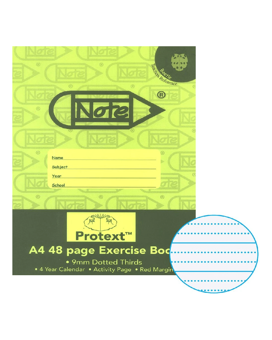 This Protext A4 Exercise Book has 9 mm dotted lines so that you can easily write your words in a shapely and consistent style. The polypropylene cover is durable so you won't have to worry about attaching a book covering. The strong pages resist 'dog-eared' corners which will preserve the condition of your book.