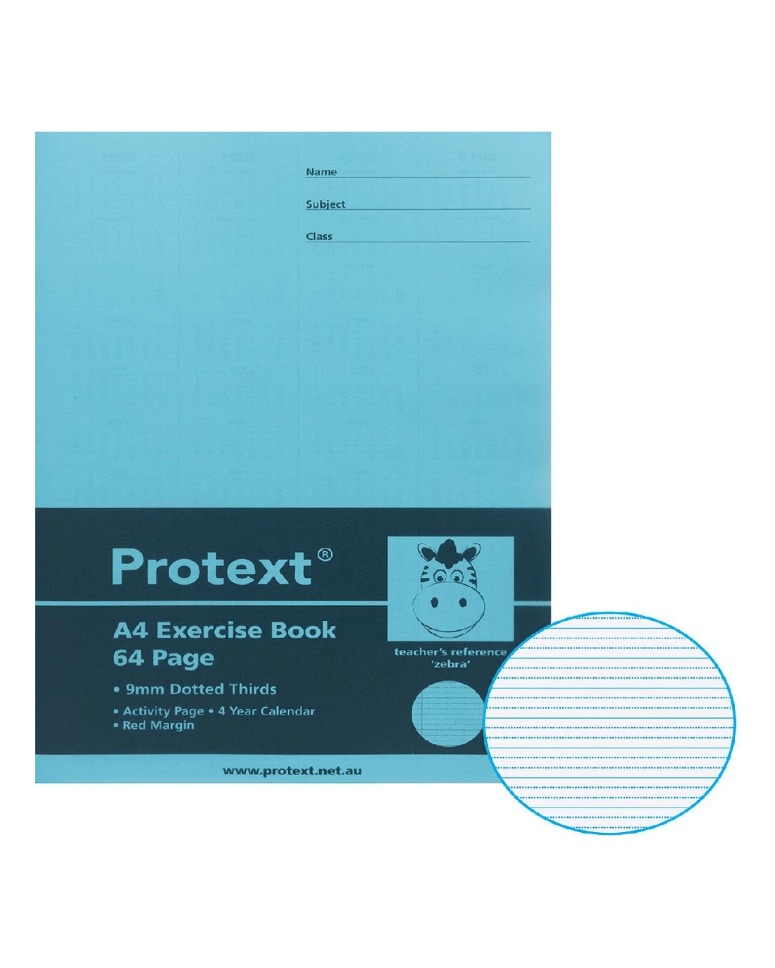 This Protext A4 Exercise Book has 9 mm dotted lines so that you can easily write your words in a shapely and consistent style. The polypropylene cover is durable so you won't have to worry about attaching a book covering. The strong pages resist 'dogs eared' corners which will preserve the condition of your book.