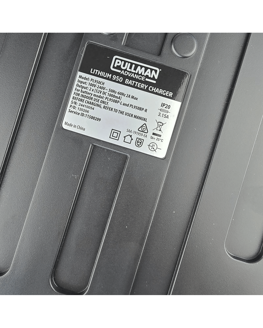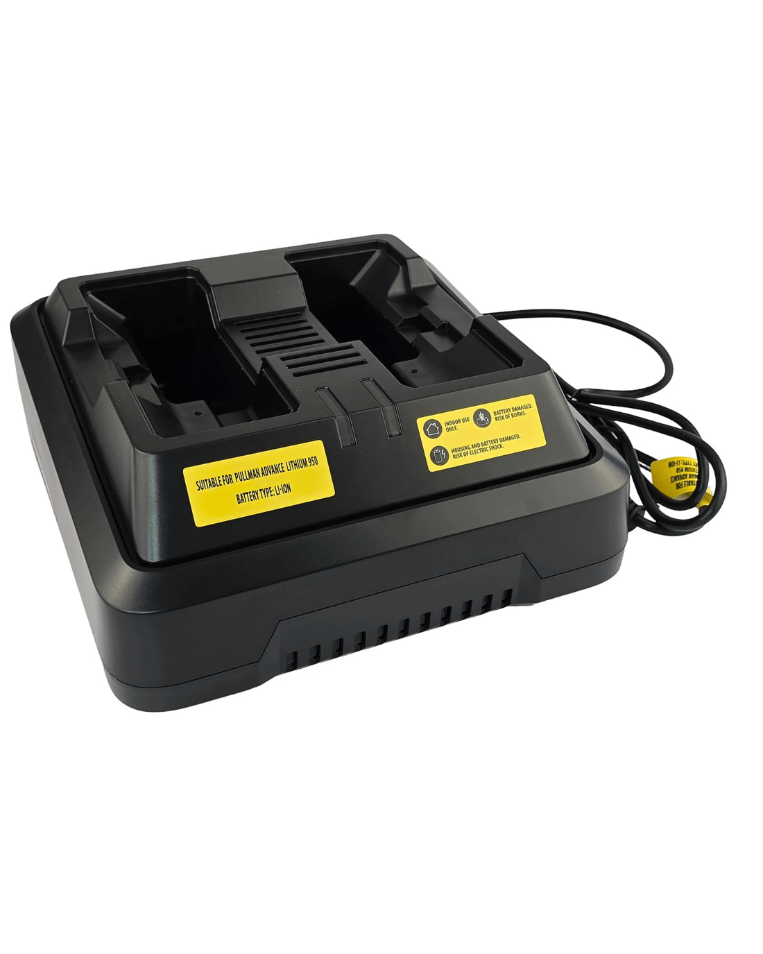 The Pullman Charger for Pullman Advance PL950 Backpack Vacuum Cleaner Batteries is tailored specifically for the Pullman PL950 model. It ensures the optimal delivery of voltage and current to safely recharge the lithium-ion battery packs. This charger is designed to work with both the left and right batteries of the PL950, providing consistent power to maintain vacuum performance.