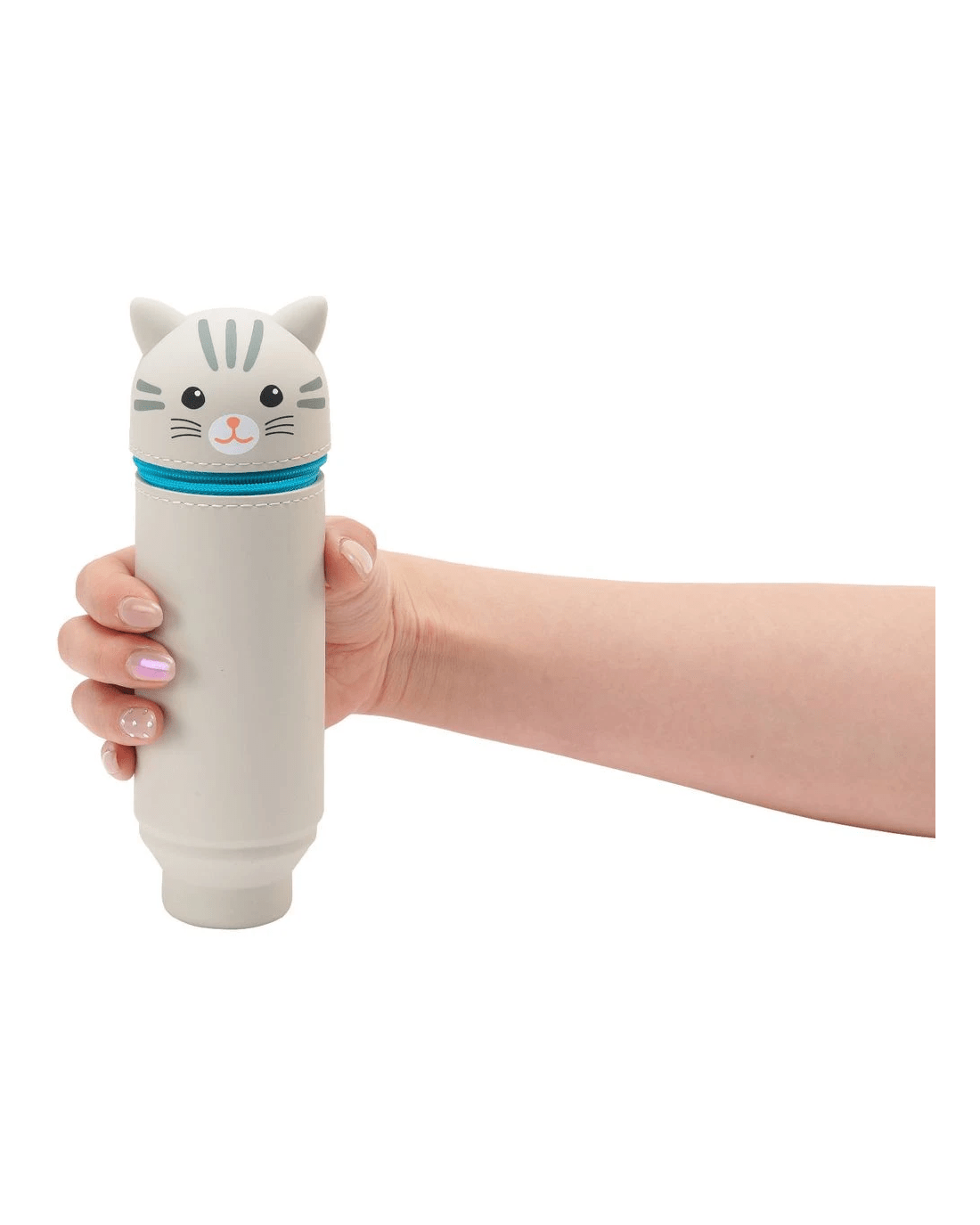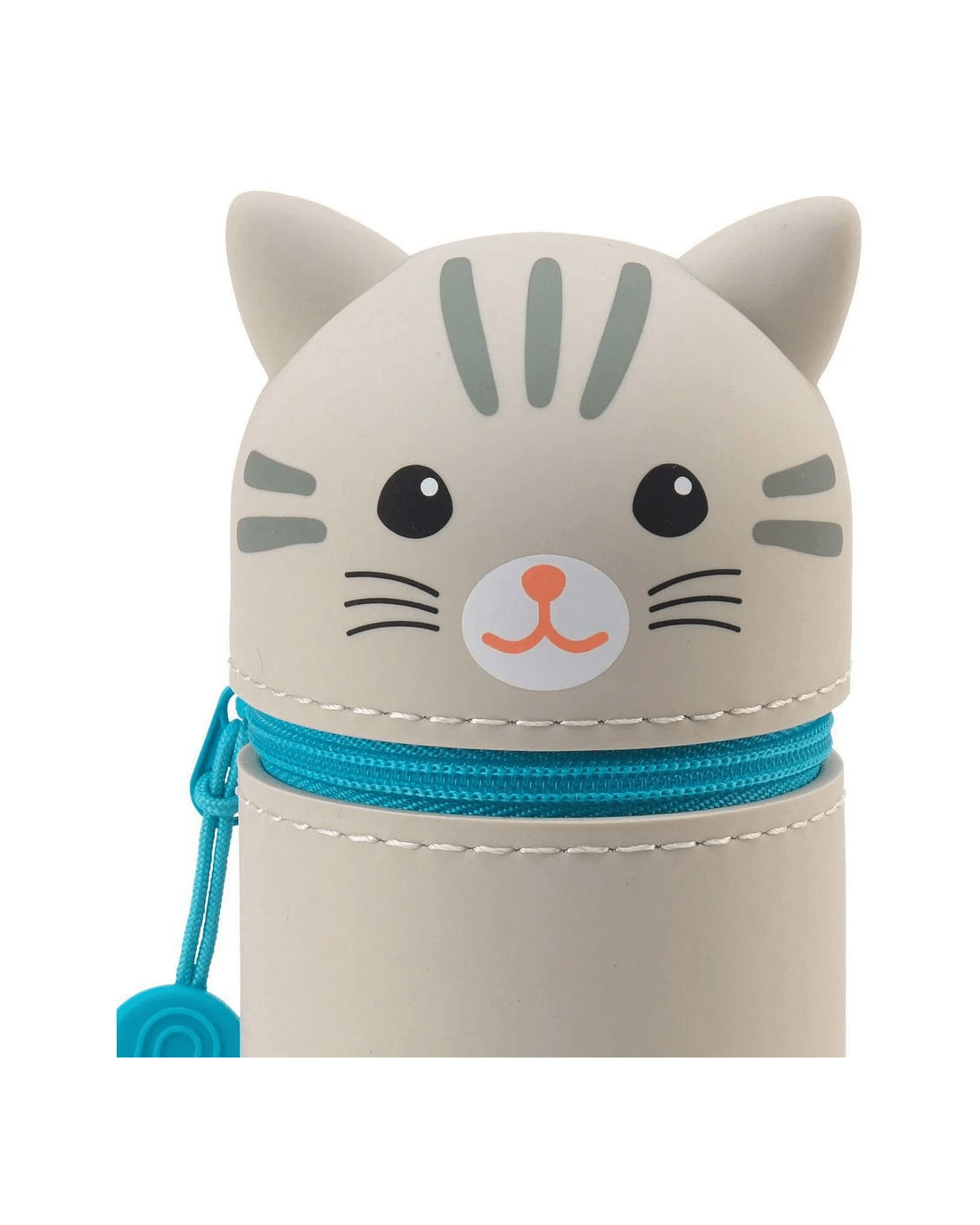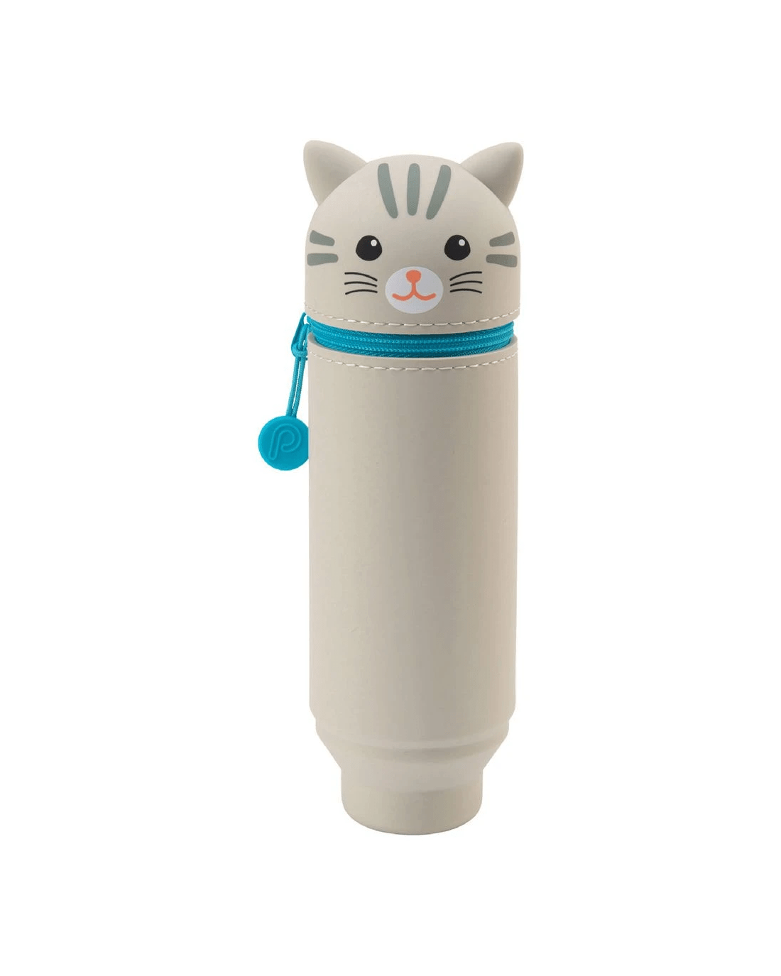 Sold by OfficeworksPuniLabo Single Zip Stand Up Silicone Pencil Case Grey Cat