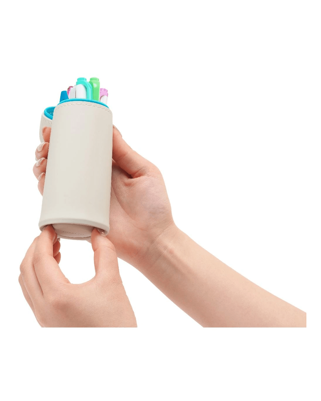 - It stands upright transforming into a pen cup to keep your pencils accessible.