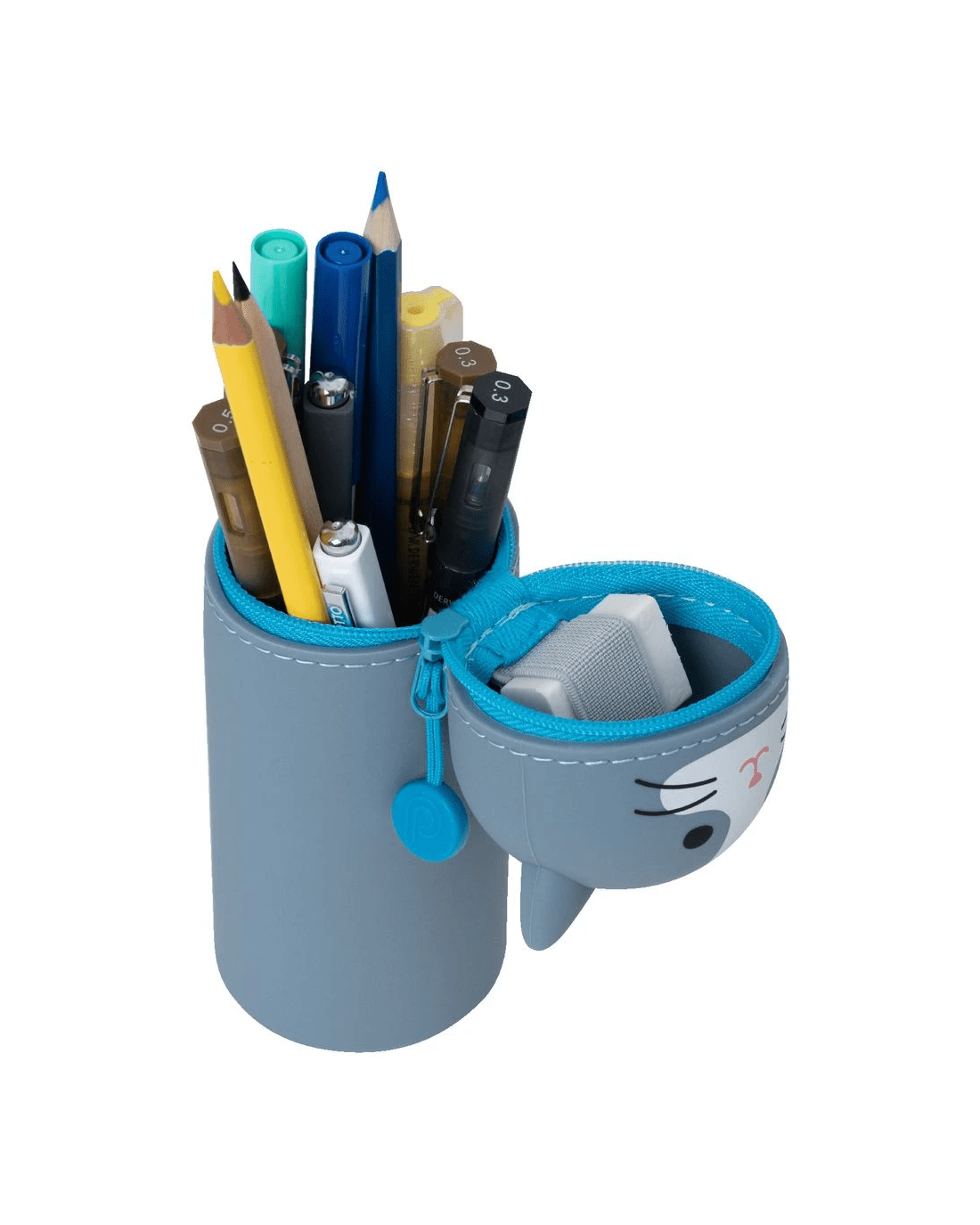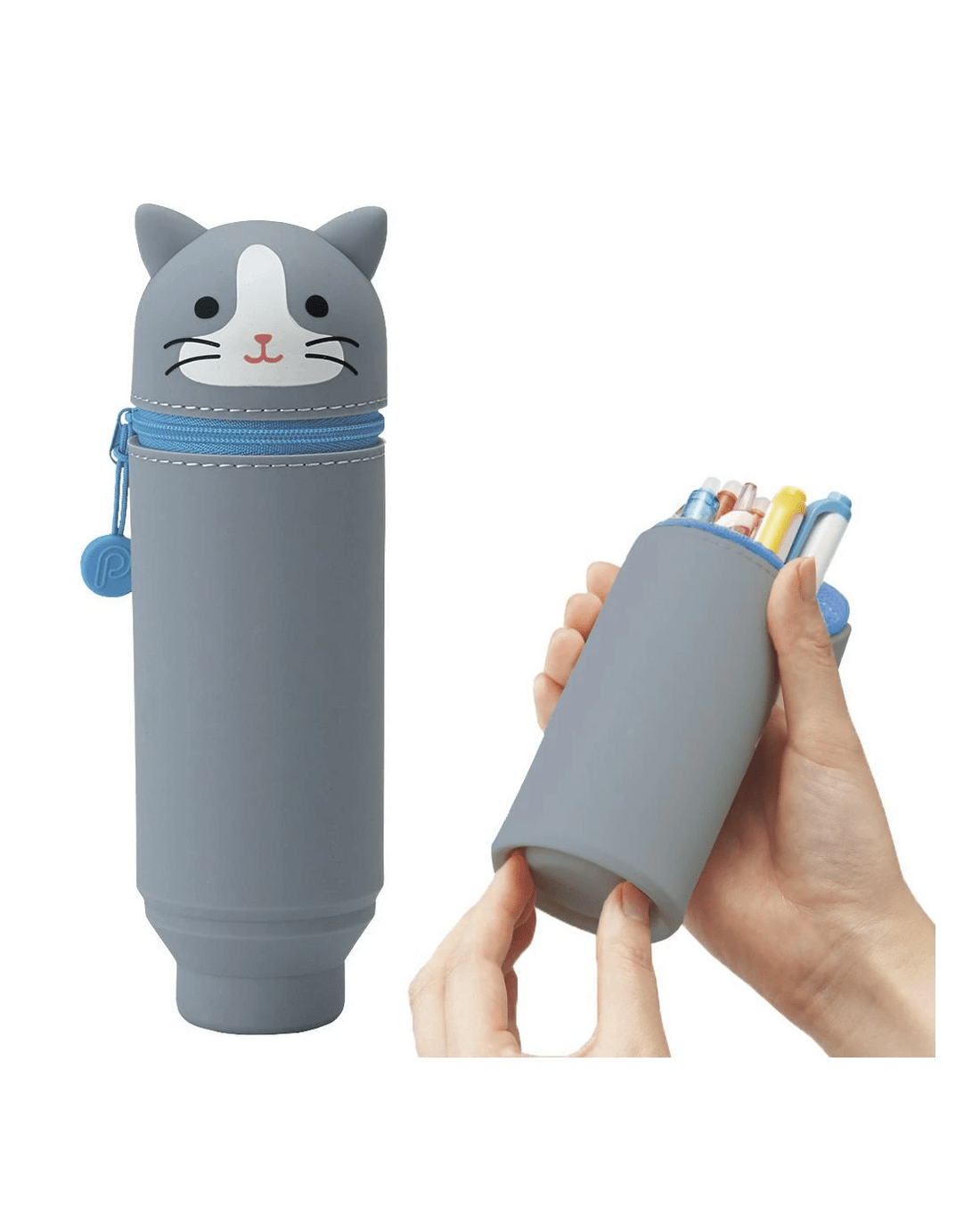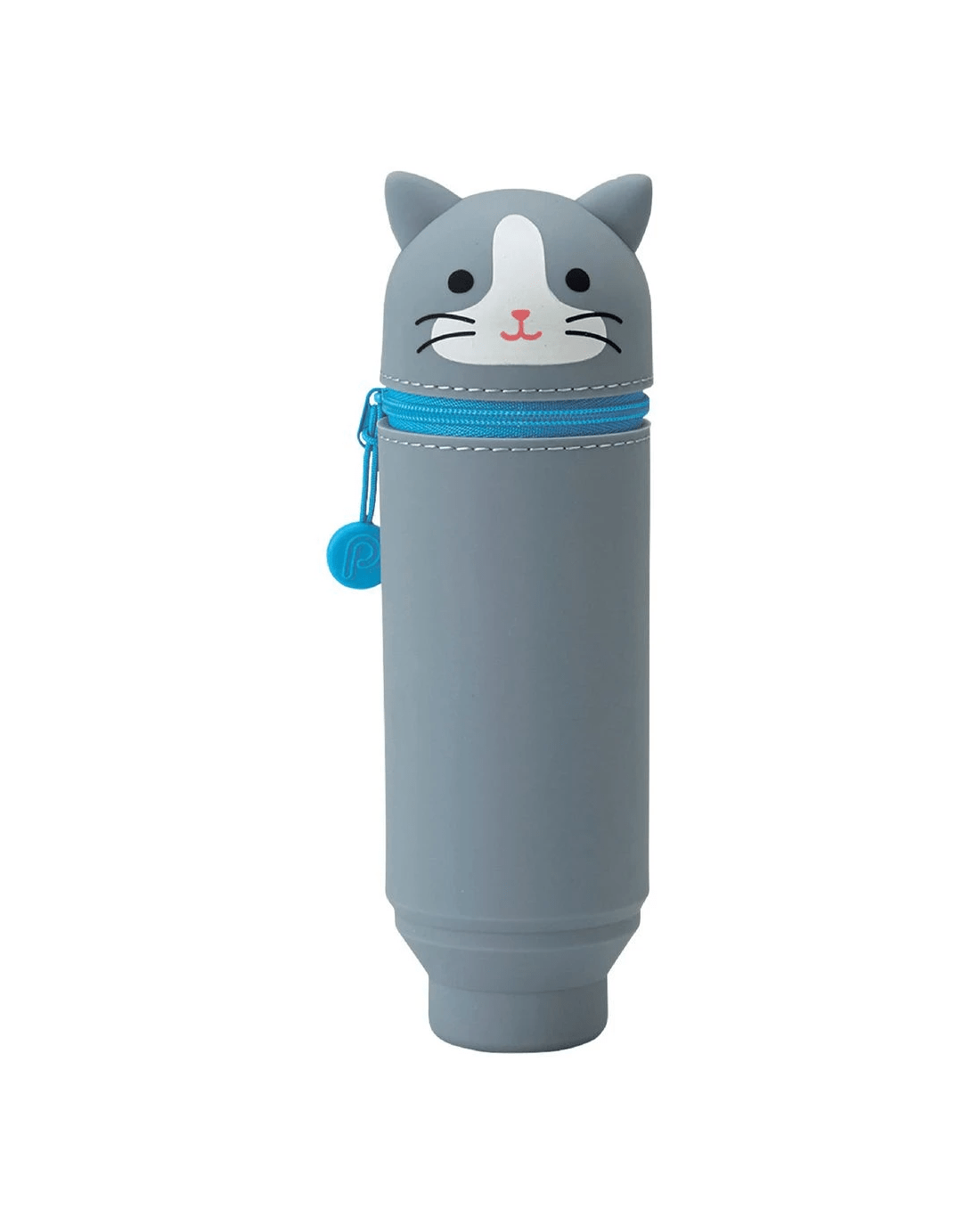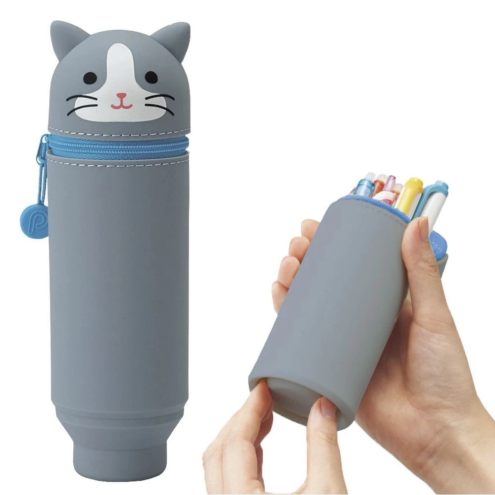 PuniLabo Single Zip Stand Up Silicone Pencil Case Grey Cat