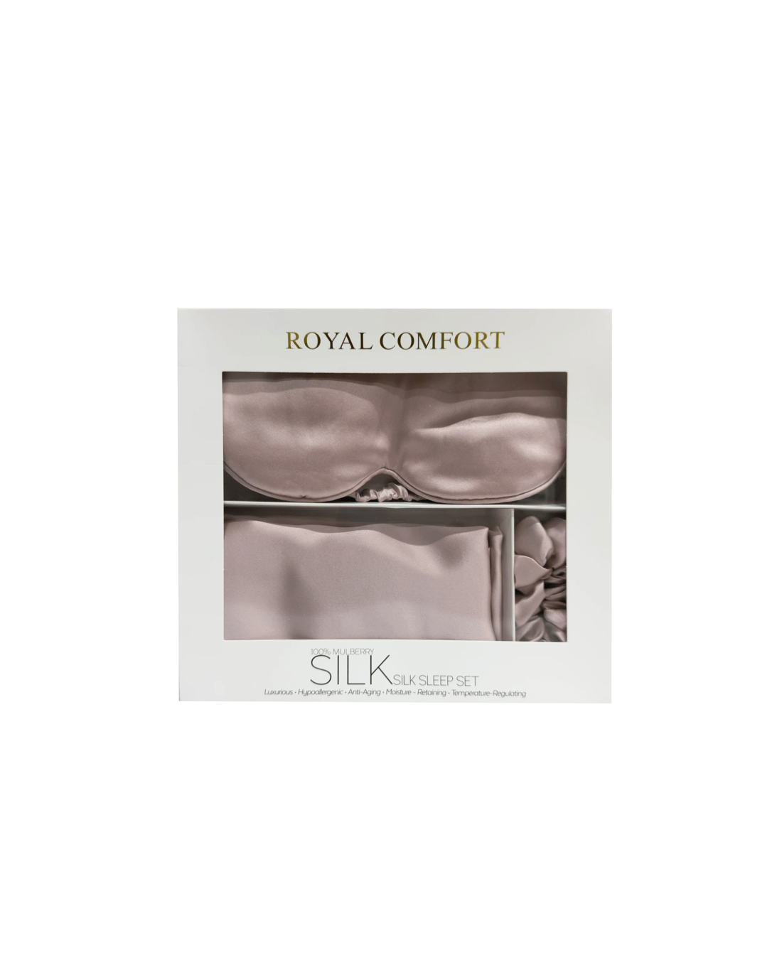A timeless luxury gift designed to be cherished, the Royal Comfort Pure Mulberry Silk Sleep Set is an elegant way to spoil someone special — or yourself. Crafted from premium 100% Mulberry silk, this beautifully presented set brings together comfort, care and understated indulgence.