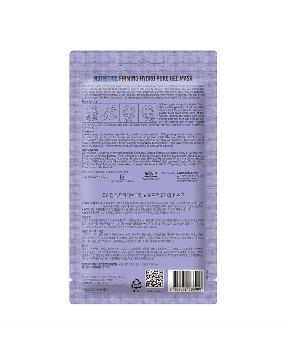 Purederm Nutritive Firming Hydro Pure Gel Mask 24g