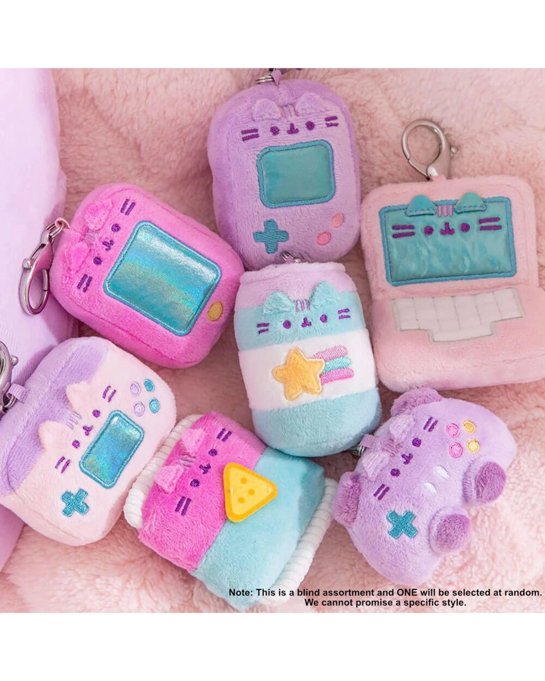Level up with Pusheen! This series of miniature surprise plush features 8 vibrant and irresistibly cute designs, each showing Pusheen as an adorable gaming accessory or treat. From laptops, handheld controllers, and colourful consoles to soda cans and bags of chips, Pusheen is ready to play! Unbox and collect all eight, including a rare mystery style. Each plush includes a metal keyring for secure attachment to bags and backpacks. Ages 8 +Features