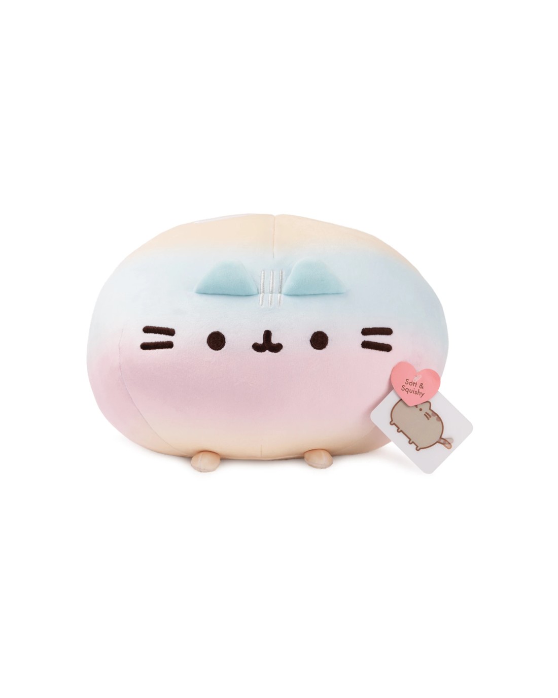Pusheen is here as a round, delightfully squishy Squisheen! Made from a super-soft elastic fabric, this round pastel rainbow ombre Pusheen plush features Pusheen's signature smile, paws and tail, all in a huggable round shape. Multi-coloured and surface-washable for easy cleaning. Appropriate for ages 8 and up. Each Pusheen Squisheen plush ships in a protective poly bag.