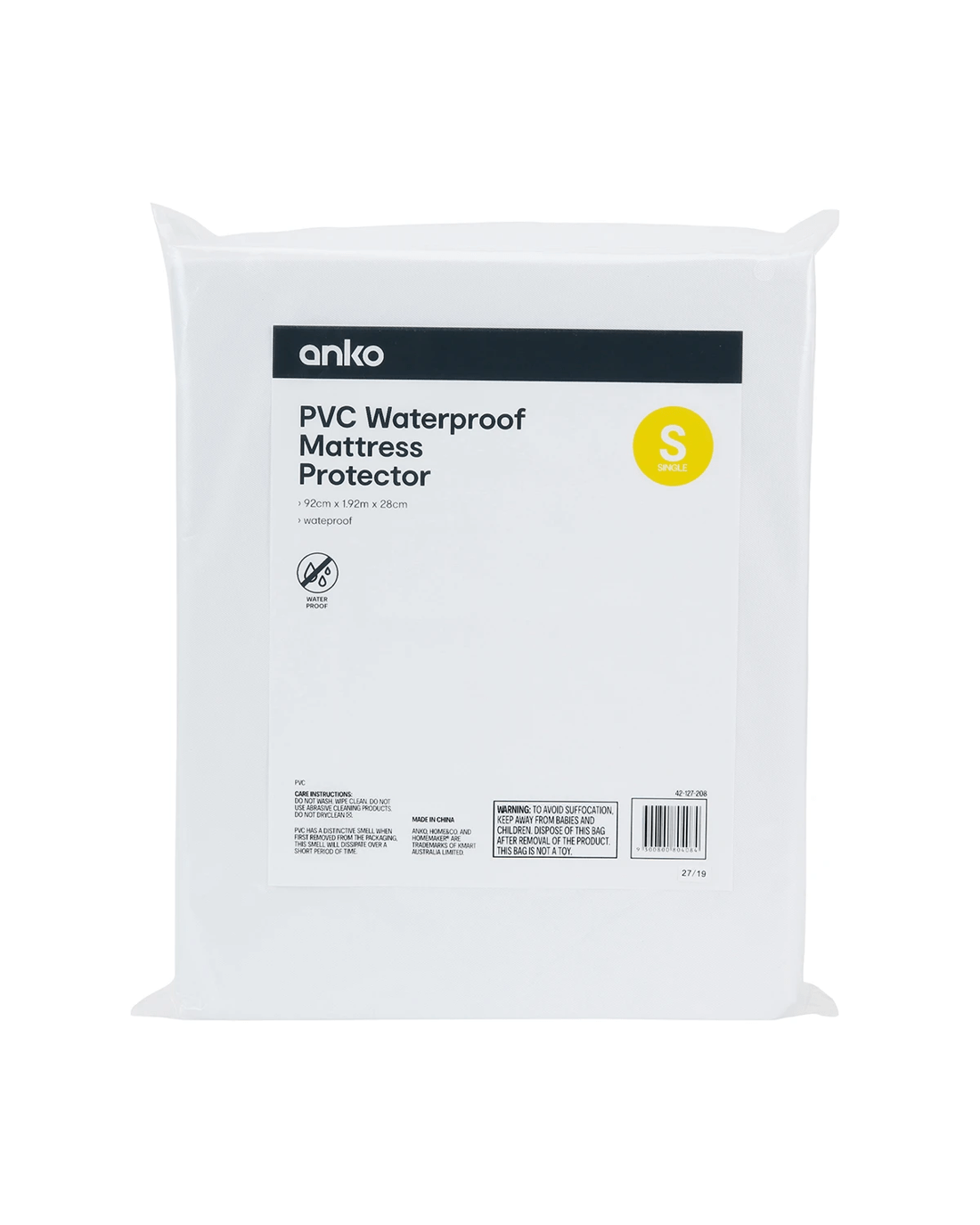 PVC Waterproof Mattress Protector - Single Bed, White