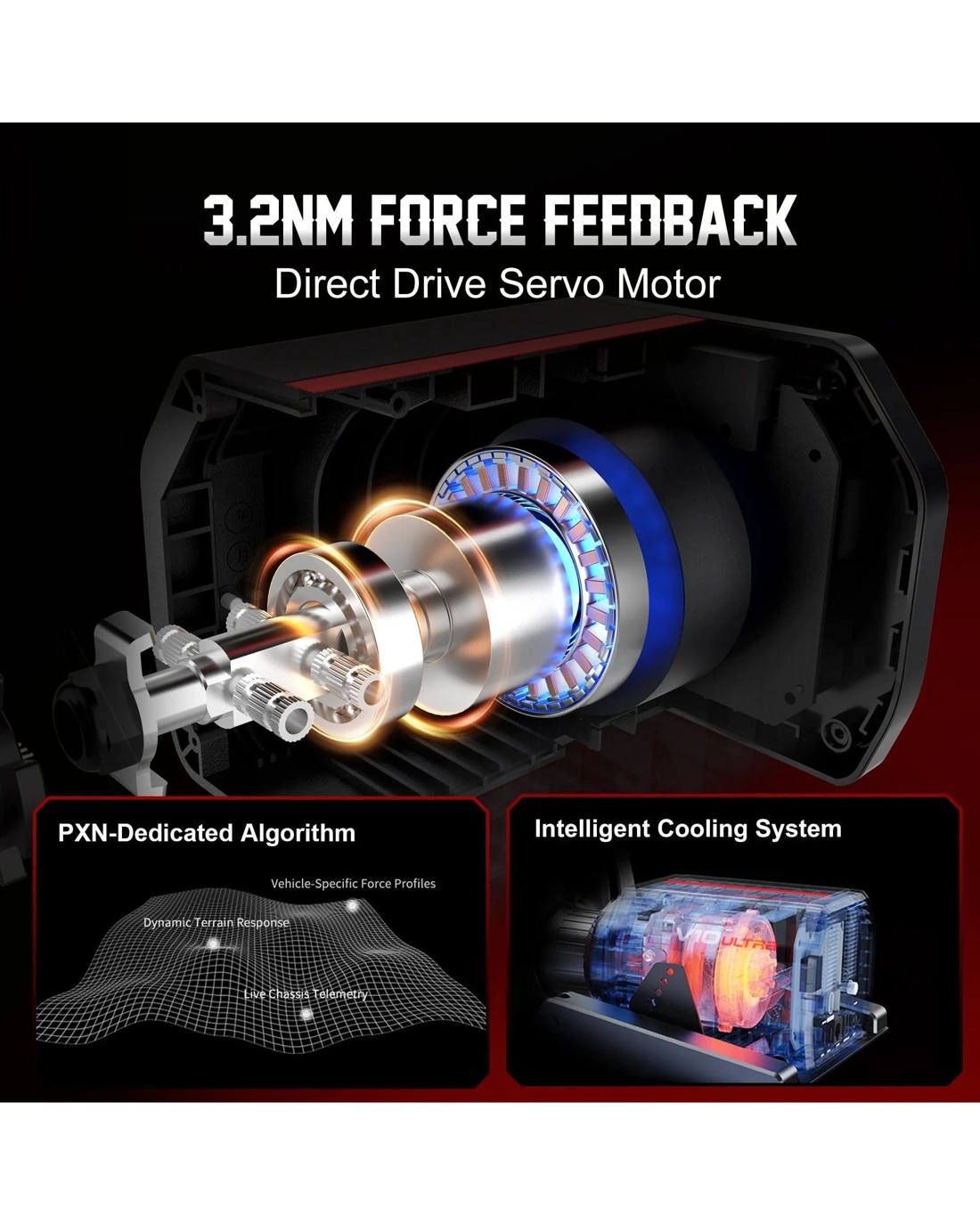 • 3.2 Nm dual‑motor direct‑drive force feedback